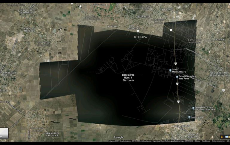 La zona del aeropuerto de Santa Lucía, en el Estado de México, aparece bloqueada para las imágenes satelitales en Google Maps y Google Earth en versión de computadoras de escritorio, aunque la Secretaría de Defensa Nacional no pidió que se ocultara esta información.En aplicaciones móviles de Google Maps sí se mostraba la vista satelital, pero no en la aplicación de Google Earth.Al ubicar la terminal, identificada como "Base aérea n°1 de Santa Lucía", y puntos aledaños se muestran oscurecidos y no se permite la función de acercamiento 3D o "Street View". Aunque lugares aledaños al aeropuerto están del perímetro oscurecido, en estos sí se activa la opción 3D.El gobierno de Andrés Manuel López Obrador busca construir en la base aérea un nuevo aeropuerto, pero el proyecto está suspendido por recursos legales.Luis Cresencio Sandoval, titular de la Secretaría de la Defensa Nacional (Sedena), dijo hoy que no hay ninguna instrucción en particular para que no sea visible. "Lo que sí, hay muchas instalaciones militares, así aparecen, si ustedes revisan alguna otra instalación así va a aparecer. "Dentro de lo que sacan en Google Maps, lo que ubican como instalación militar la ponen en oscuro y no pueden ubicar con precisión que hay adentro, eso es parte de lo que han tomado, quizá a nivel mundial, no nada más en México, de instalaciones que son consideradas estratégicas dentro de los países", comentó el secretario al ser cuestionado al respecto durante la conferencia de prensa matutina del Presidente en Ciudad de México.IM