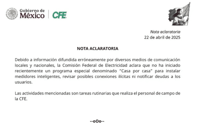 La Comisión Federal de Electricidad (CFE) ha iniciado un operativo a nivel nacional bajo el nombre Casa por Casa, una iniciativa enfocada en actualizar y optimizar el sistema de medición eléctrica en todo el país. Este programa tiene como propósito principal mejorar la exactitud en el registro del consumo energético, reducir pérdidas por robo de electricidad y garantizar un sistema más transparente tanto en hogares como en negocios. Aunque no se ha emitido un calendario oficial con fechas específicas, la CFE ha señalado que las acciones están enfocadas en zonas donde se ha identificado un alto índice de robo de energía. Entre los estados prioritarios se encuentran el Estado de México, Ciudad de México, Veracruz, Jalisco, Tamaulipas y Nuevo León.También se contempla la intervención en áreas rurales y sectores urbanos donde se ha reportado consumo no registrado o donde existen denuncias por conexiones clandestinas. El personal de la CFE realiza una revisión detallada de los siguientes aspectos:- Estado de los medidores: Se evalúa su funcionamiento y se busca evidencia de alteraciones o manipulaciones.- Conexiones eléctricas: Se inspeccionan cambios no autorizados en el sistema, como la instalación de dispositivos ilegales conocidos como "diablitos", diseñados para reducir artificialmente el consumo registrado.- Patrones de consumo: Se analizan comportamientos de uso inusuales que podrían indicar fraudes o fallas en el sistema de medición.Uno de los avances clave de este programa es la implementación de medidores inteligentes, capaces de registrar datos en tiempo real y enviar información directamente a la CFE. Esto elimina la necesidad de lecturas manuales constantes y facilita la identificación de anomalías o cambios sospechosos en el consumo. EE