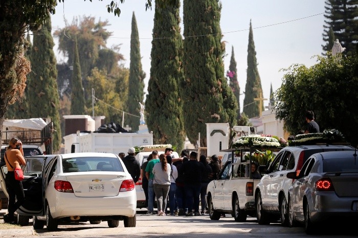 La desatada pandemia del COVID-19, que suma cifras récord de muertos desde hace semanas, va a camino de sobrepasar la capacidad de los cementerios de Ciudad de México, donde los trabajadores trabajan siete días a la semana y los entierros ocurren uno tras otro, a veces con escasas medidas de seguridad."Nuestros panteones son pequeños y de promedio había tres, cuatro o cinco entierros al día en total en los 11 panteones. Ahora hemos estado manejando de 10 a 15 al día", explicó este domingo Daniel de la Cruz, jefe de panteones de la Alcaldía de Tláhuac, en el sureste de la capital, tras una semana récord de muertos y contagios en el país.Los cementerios, caracterizados por sus montones de coloridas tumbas entre las que las familias caminan para visitar a sus seres queridos, se están viendo más saturados que nunca y el número de trabajadores, lejos de ascender, desciende."Seguimos trabajando con las mismas personas, no mandaron más. Y obviamente hay restricciones porque algunos compañeros son de la tercera edad y hemos visto reducida la plantilla", añadió De la Cruz.Del mismo modo, las empresas funerarias vieron los servicios incrementados, todavía más que en los primeros meses de la pandemia.La compañía Gayosso, líder en el sector, ha tenido un gran aumento en el número de servicios que realizan a diario pero también en la inversión."El primer gran pico vino en julio, posteriormente en agosto, octubre bajó pero en noviembre estaba casi como julio. Después en diciembre hubo un 75 % más servicios que en julio y ahora en enero 40 % arriba de diciembre", dijo Alejandro Sosa, director de operaciones de grupo Gayosso.A pesar de los datos que no paran de subir, muchas familias, asegura De la Cruz, todavía no son capaces de aceptar las normas, y más en las zonas donde las costumbres están muy arraigadas y la muerte es un momento de unión familiar.En el panteón de Tláhuac se abre el portón y entran, después del coche fúnebre, unas 40 personas acompañadas por varios músicos que le cantan al fallecido. No es una excepción."Desafortunadamente la gente no ha entendido el mensaje, siguen pensando que el virus no existe y el panteón no es la excepción. De acuerdo al protocolo son máximo 20 personas pero hay gente que no entiende y a la mala se meten al panteón", explicó el funcionario.A pesar de que hasta el momento ha tenido varios enfrentamientos, intenta llegar a un equilibrio entre seguir la normas y mantener a los vecinos tranquilos.Algunos, por su propia iniciativa, acuden menos de cinco al entierro y comprenden la gravedad de la situación actual."Le dije a los familiares que no vinieran porque podríamos contagiarnos si alguno tenia COVID. Por eso solo por videollamada y a seguirnos cuidando porque no hay que bajar la guardia", dijo una mujer cuya madre estaba siendo enterrada después de una complicación de su enfermedad respiratoria.Por su parte, Sosa pidió a la ciudadanía que se siga cuidando ya que Gayosso, dijo, al contrario de los que muchos creen, está perdiendo dinero. "Somos los primeros que queremos que esto se acabe por negocio y por conciencia de lo que está pasando", expuso.Desde que empezó la pandemia la última semana de febrero de 2020, México acumula 1.7 millones de enfermos y roza los 150 mil decesos, cifras que se han disparado esta semana con unos 20 mil contagios y dos mil muertos diarios, y que sitúan la vacuna como única esperanza en un país con una economía muy dañada.La ocupación nacional de camas para intubación es del 54 % y los estados con mayores índices son la Ciudad de México (87 %), el Estado de México (82 %) y Nuevo León (75 por ciento).GC