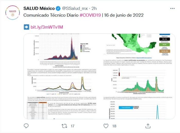 La Secretaría de Salud (Ssa) reportó en las últimas 24 horas nueve mil 406 contagios por COVID-19, lo que sumó cinco millones 852 mil 596 casos totales. También informó que se registraron 69 muertos por la enfermedad, lo que acumuló 325 mil 340 fallecidos en el país.La dependencia resaltó que en las últimas cinco semanas, la mayor parte de los casos están presentes en los grupos de 18 a 29 años, seguido del grupo de 30 a 39 años y 40 a 49 años, y subrayó que la distribución por sexo en las defunciones confirmadas muestra un predomino del 62% en hombres.La Secretaría expuso que los casos confirmados acumulados por entidad de residencia, las 10 primeras entidades que acumulan el mayor número de casos son: Ciudad de México, Estado de México, Nuevo León, Guanajuato, Jalisco, Tabasco, San Luis Potosí, Veracruz, Puebla y Sonora, que en conjunto conforman el 64% de todos los casos acumulados registrados en el país.JM