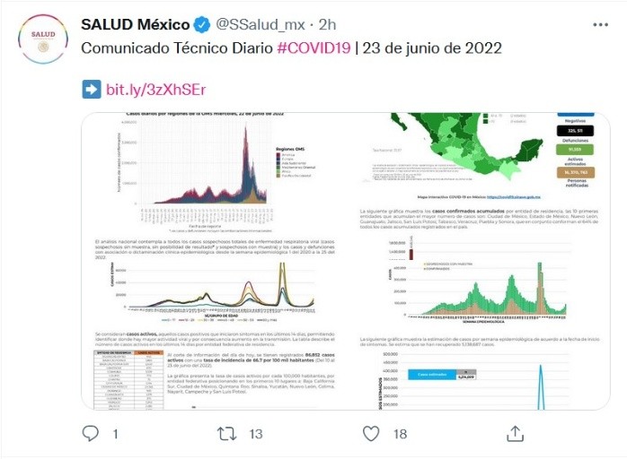 La Secretaría de Salud (Ssa) reportó que en las últimas 24 horas, México registró 16 mil 133 nuevos contagios de COVID-19, con los que sumó cinco millones 923 mil 086 casos totales de la enfermedad.Igualmente, informó de 24 muertes por la enfermedad, con las que el país ya acumula 325 mil 511 fallecidos a causa del virus.La dependencia resaltó que la distribución de los casos estimados por los grupos de edad seleccionados y semanas epidemiológicas del 2020, 2021 y 2022, en las últimas cinco semanas, la mayor parte de los casos están presentes en los grupos de 18 a 29 años, seguido del grupo de 30 a 39 años y 40 a 49 años.Conjuntamente expuso que los casos confirmados acumulados por entidad de residencia, las 10 primeras entidades que acumulan el mayor número de casos son: Ciudad de México, Estado de México, Nuevo León, Guanajuato, Jalisco, San Luis Potosí, Tabasco, Veracruz, Puebla y Sonora, que en conjunto conforman el 64% de todos los casos acumulados registrados en el país.JM