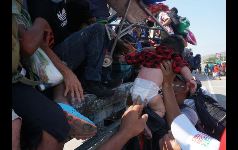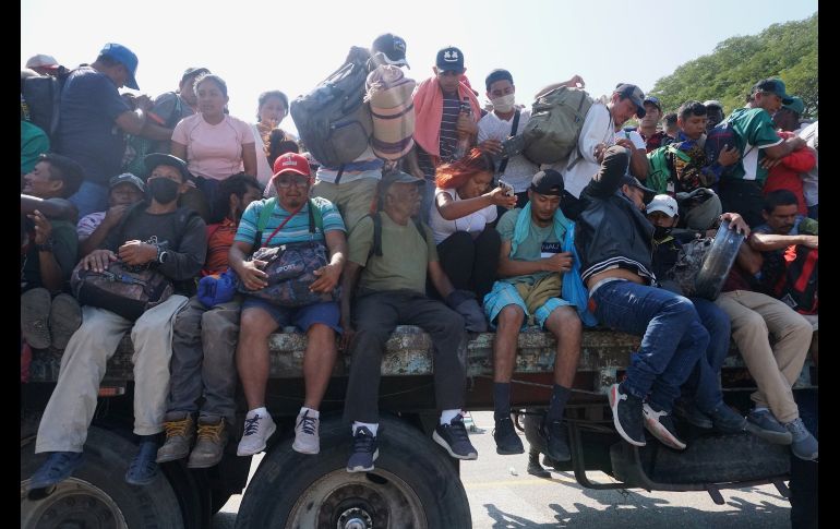Cientos de integrantes de la caravana migrante que lleva 20 días recorriendo el sur de México decidieron subirse en camiones para completar la ruta de hoy por Oaxaca, tras largas jornadas de caminata.Desesperados por el cansancio y el calor acumulado tras recorrer a pie más de 340 kilómetros desde Chiapas, pararon camiones en Santiago Niltepec para pedir que los dejaran viajar en ellos.Mujeres y niños, principalmente, se acomodaron entre los espacios de los remolques de los camiones, insuficientes ante el volumen de personas que querían subir.Al menos cuatro camiones fueron utilizados por los migrantes para avanzar 22 kilómetros más hacia La Venta, donde harán nuevamente una escala para continuar su camino durante el fin de semana por la región del Istmo de Tehuantepec."Vámonos, vámonos", gritaban algunos migrantes para que el conductor avanzara una vez que estuvieron acomodados sobre el vehículo, debido a que la Guardia Nacional se encontraba cerca.Al ver la estrategia de los migrantes, la Guardia Nacional cerró la carretera para impedir el paso de más camiones que les pudieran servir de transporte.En días recientes, un total de 800 migrantes de la caravana han regularizado su situación en el país a través del Instituto Nacional de Migración (INM) y, a raíz de ello, han abandonado el contingente.Jeffrey, nicaragüense, viaja con su madre, esposa y dos hijos, y las llagas en los pies ya no le dejan avanzar."Hemos venido a sufrir, pero ya no podemos regresar, nos prometieron la ayuda de la visa humanitaria y ojalá sea cierto, yo tuve dos embolias y no quiero volver a mi país", dijo a Efe llorando el hombre de 47 años, quien este viernes también se entregó al Grupo Beta (un grupo de apoyo) del INM.Como Jeffrey, este viernes se entregaron unos 20 migrantes más vencidos por el cansancio y dolor de viajar con sus hijos, que en muchos casos no rebasan los cinco años de edad.Las familias que acuden a los agentes son trasladadas a las garitas del INM de Tapanatepec y La Ventosa, donde son transportados en autobuses a los estados de Puebla, Guanajuato y Ciudad de México, donde les prometen regularizar sus documentos migratorios, algo que han puesto en duda activistas.IM
