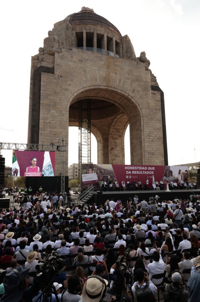 La todavía jefa de Gobierno de la capital mexicana, Claudia Sheinbaum, se dio este jueves su último baño de masas para despedirse del cargo antes de buscar la Presidencia de México, en un acto en el que repasó los que consideró los mayores logros de su mandato.Pese a las altas temperaturas que se registran en el país estos días, miles de personas se congregaron en la céntrica plaza del Monumento a la Revolución y sus calles aledañas en señal de apoyo a Sheinbaum, quien este viernes dejará su cargo para participar en el proceso interno con el que su partido, el gobernante Movimiento Regeneración Nacional (Morena), designará a su candidato a los comicios presidenciales de junio de 2024."Hoy es mi último día como jefa de gobierno de Ciudad de México. Dejo la gran tarea de gobernar a este digno pueblo de la ciudad para salir a encontrarme con el pueblo de México, para dar continuidad a la cuarta transformación de la República, para hacer realidad que una mujer encabece los destinos de la nación", dijo en el multitudinario encuentro con la ciudadanía.Tras casi cinco años de mandato, la funcionaria celebró algunos de sus éxitos y los comparó con los conseguidos a nivel nacional por el Presidente Andrés Manuel López Obrador, con quien tiene gran afinidad y a quien consideró el mejor mandatario de la historia moderna del país. "Pasamos de la corrupción a la honestidad, de los privilegios a los derechos, de la entrega de la ciudad a los intereses de unos cuantos al rescate de la ciudad para el interés de las mayorías, de la exclusión a la inclusión, de la discriminación a la igualdad, de la represión a la libertad, del silencio a la música, y del enojo a la alegría", enumeró.Sheinbaum destacó los avances económicos, laborales, turísticos, sanitarios y culturales logrados en la capital mexicana, pero también las inversiones en educación y programas sociales centrados en los habitantes más pobres.También subrayó avances en seguridad, como la reducción de los delitos de alto impacto en un 58% y los homicidios dolosos en un 51%.En el acto, Sheinbaum estuvo acompañada por los miembros de su gabinete, entre los que se encontraba el secretario de Gobierno de la capital y propuesto por la mandataria como su sustituto, Martí Batres.De acuerdo con la mayoría de sondeos, Sheinbaum es la favorita en la contienda interna, cuyo resultado se conocerá el 6 de septiembre, y con ello se convertiría en la candidata de su partido a la Presidencia de México.Está previsto que durante la tarde del viernes, tras deslindarse de su cargo, formalice su registro como aspirante a lo que Morena ha denominado "coordinador nacional de defensa de la cuarta transformación", como se conoce al movimiento del Presidente Andrés Manuel López Obrador, lo que, prácticamente, significará ser el candidato presidencial. CR
