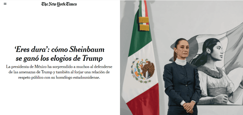 "Eres dura", dijo el presidente de Estados Unidos, Donald Trump a la Mandataria mexicana Claudia Sheinbaum, reportó el medio The New York Times.En un reportaje de Natalie Kitroeff, se menciona que el líder estadounidense le dijo esa frase en una llamada telefónica el mes pasado.Se indica que cuatro fuentes mencionan esa postura y en el artículo de Kitroeff se señala que "en su conversación más reciente, los dos líderes intercambiaron elogios y lograron un alivio de algunos aranceles en tiempo real, dijeron las personas familiarizadas con la llamada".En el texto de Kitroeff recuerda que Trump "últimamente, ha elogiado a la señora Sheinbaum, al tiempo que critica duramente a líderes mundiales con más experiencia. La ha llamado 'una mujer maravillosa' con quien tiene una 'muy buena' relación"."Su actitud tranquila y los resultados que ha obtenido en materia de migración y fentanilo parecen haberle ganado su respeto, dicen funcionarios de ambos países, impresionando a miembros clave de su administración, incluido el subjefe de gabinete, Stephen Miller, quien supervisa la política interna y es asesor de seguridad nacional".Destaca, además, que "su relación con el presidente estadounidense se ve favorecida en parte por el contraste con la relación mucho más conflictiva de Trump con el primer ministro de Canadá, Justin Trudeau, quien dejó el cargo el viernes".Kitroeff narra que "al comienzo de su conversación más reciente la semana pasada, (…) Sheinbaum dedicó unos cinco minutos a repasar todo lo que había hecho para asegurar la frontera y combatir el tráfico de fentanilo, según dos personas familiarizadas con las conversaciones. Antes de la llamada, le había enviado a Trump datos para respaldar sus argumentos. Insinuó que los aranceles solo le dificultarían explicar este nivel de cooperación a sus ciudadanos"."Trump guardó silencio un buen rato después de que ella terminara de hablar, y luego, tras elogiar a Sheinbaum, lanzó un ataque repentino contra Canadá, según las fuentes. Preguntó qué opinaba Sheinbaum de Trudeau. Ella respondió que no hablaba mucho con el líder canadiense. Trump dijo que había tenido suerte."Al final de la llamada, según comentaron, Trump ofreció excluir de los aranceles muchos productos mexicanos y luego empezó a dictar, en voz alta, una publicación en Truth Social anunciando el acuerdo. Sheinbaum y su equipo estaban eufóricos".En el reportaje también se recuerda el traslado de 29 capos de la droga a suelo estadounidense.Además, se menciona que Sheinbaum "ganó puntos al decidir hablar con Trump en inglés durante sus llamadas, según tres personas familiarizadas con las conversaciones. López Obrador habló con Trump en español, a través de un intérprete, y conversó durante tanto tiempo que a menudo aburría al presidente, según funcionarios".Las fuentes añaden que la Mandataria "Sheinbaum ha acudido a sus conversaciones con el presidente sumamente preparada (…) Ha estudiado sus discursos y visto los videos para intentar comprender el estilo de comunicación de Trump".Dicen que "su tono con él ha sido tranquilo, y los funcionarios la han percibido como seria y transparente. Ese enfoque equilibrado ha causado una buena impresión, sobre todo porque es muy diferente a Trudeau, quien ha tenido intercambios más polémicos con Trump".*Mantente al día con las noticias, únete a nuestro canal de WhatsAppOF