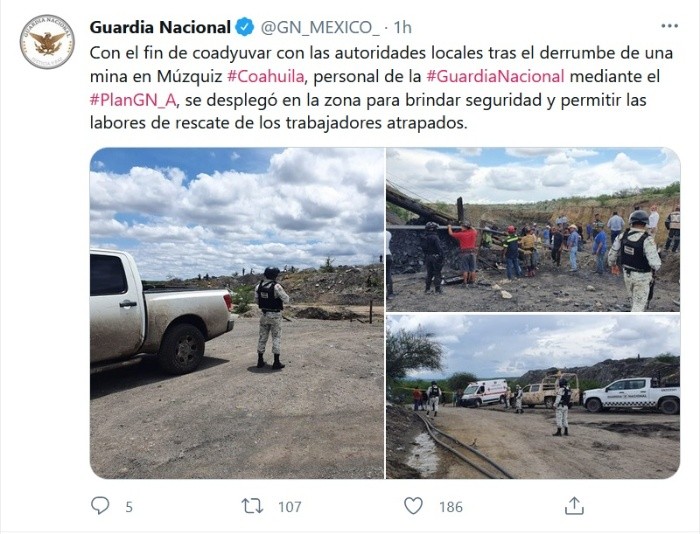 Varios mineros quedaron este viernes atrapados por el colapso de una mina en Coahuila, confirmaron las autoridades, que todavía no precisan el número exacto mientras algunos medios locales hablan de siete personas atrapadas."La Secretaría del Trabajo de Coahuila recibió el reporte de un accidente en una mina de arrastre en este municipio, hoy alrededor de las 12.50 horas", informó dicha instancia en un comunicado.Según las investigaciones preliminares, hay indicios de que el accidente se debió a un desbordamiento e inundación en la mina.La mina está inundada y los mineros están en los túneles, ya que se encontraban trabajando cuando sucedió el desbordamiento.Aunque algunos medios indican que hay siete mineros atrapados, las autoridades no precisaron el número de personas que se encuentran en la mina.Al lugar llegaron autoridades de Protección Civil e inspectores de la propia Secretaría de Trabajo para llevar a cabo las labores de rescate.En coordinación con las autoridades federales, la Secretaría de Trabajo se comprometió a realizar todas "las diligencias que sean necesarias".Según se puede ver en imágenes compartidas en redes sociales, las acciones de las autoridades ya comenzaron y algunos familiares se encuentran en la zona.Protección Civil introdujo bombas para sacar el agua pero no funcionaron. Con las bombas buscan despejar la zona para que los rescatistas puedan acceder e iniciar sus labores; además, varias personas se acercaron a la zona para ofrecer su ayuda.El accidente trae a la memoria lo sucedido el 19 de febrero de 2006, en la mina de Pasta de Conchos, donde 65 trabajadores murieron en un accidente y sólo dos cuerpos fueron recuperados.JM