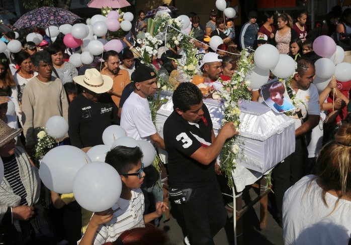 Con mariachi, globos y porras despidieron hoy en la Ciudad de México a Fátima, la niña de 7 años cuyo asesinato ha conmocionado a México.En un pequeño ataúd blanco, familiares, amigos y vecinos trasladaron el cuerpo de la casa donde fue velada, al cementerio, con una escala en la escuela Enrique Rébsamen, donde desapareció el 11 de febrero.Los familiares llevaron también peluches que le gustaban a la niña hasta el panteón San Sebastián Tulyehualco.Mototaxis apoyaron en el cierre de la avenida Tláhuac-Tulyehualco, mientras que algunas patrullas y policías de Xochimilco custodiaron el cortejo.Previamente, los familiares y vecinos se despidieron este martes de la menor con una misa de cuerpo presente.El cuerpo de la menor Fátima fue encontrado este fin de semana en una bolsa de plástico y con signos de violencia en la alcaldía Tláhuac, en el sur de la capital mexicana, cerca de Santiago Tulyehualco, donde vivía con su familia.Además, este martes la fiscal capitalina, Ernestina Godoy, confirmó que la necropsia revelaba abuso sexual.La última vez que se vio con vida a la niña, fue el pasado 11 de febrero. Cuando su madre llegó 20 minutos tarde a recogerla al colegio, otra mujer, cuya identidad todavía se desconoce, ya se la había llevado.Con información de EFE/NTX/SUN