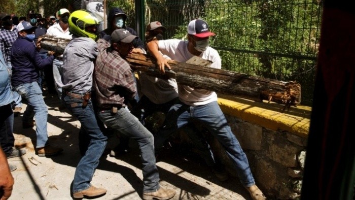 Un tratado firmado en 1944 entre México y Estados Unidos está detrás de que miles de personas lleven meses en pie de guerra en el lado mexicano de la frontera.El acuerdo regula cómo los dos países deben repartirse el agua de los ríos Bravo y Colorado, que forman parte del límite territorial entre ambos.El gobierno de México tiene poco más de un mes para entregar a su vecino del norte la parte que le corresponde. Para ello, asegura que debe utilizar la almacenada en la presa la Boquilla, en el estado de Chihuahua, en el norte del país.Y aunque afirma que el suministro está garantizado para la población, los agricultores de la zona se niegan a la extracción porque aseguran que los dejaría sin el recurso suficiente para poder cultivar tras haber sufrido una pronunciada sequía.La tensión aumentó a ritmo vertiginoso en la última semana con graves enfrentamientos entre miembros de la Guardia Nacional y campesinos, que tienen desde entonces tomada la presa para evitar el desfogue.Una mujer agricultora fue asesinada el 8 de septiembre tras participar en las protestas. Según testigos, fue alcanzada por disparos de guardias nacionales. La Fiscalía estatal investiga lo sucedido.El propio presidente mexicano, Andrés Manuel López Obrador, responsabilizó a "grupos políticos" de las protestas y mostró su preocupación por el hecho de que este conflicto impida cumplir con el tratado firmado con EE.UU. y por cuál podría ser su reacción.De hecho, el mandatario aseguró este jueves que el gobernador de Texas -estado fronterizo con Chihuahua- envió una carta al secretario de Estado de EE.UU., Mike Pompeo, "reclamando que México no está cumpliendo con el pago del agua y haciendo algunas propuestas".El gobernador de Chihuahua, Javier Corral, acusó por su parte a la Comisión Nacional del Agua (Conagua) de ocultar a quienes "se aprovechan de manera irregular" desde dentro del organismo robando agua de la zona, una práctica que ya ha sido bautizada como "huachicoleo de agua" o "aguachicoleo".Mientras, varios diputados de Chihuahua consideran precisamente que el tratado en cuestión es la base del problema y anunciaron que acudirán a tribunales internacionales para pedir que el acuerdo sea revisado y pueda así garantizar el abastecimiento de agua a los productores del estado.De alguna manera, se podría decir que el llamado Tratado de la Distribución de las Aguas Internacionales firmado por México y EE.UU. en 1944 tiene su origen en otro acuerdo alcanzado casi un siglo antes.El Tratado de Paz, Amistad, Límites y Arreglo Definitivo (más conocido como Tratado de Guadalupe Hidalgo), firmado en 1848 al final de la guerra entre ambos países iniciada por la disputa de Texas, fue el que estableció que México cedería a EE.UU. más de la mitad de su territorio en aquel entonces.Pero además, también fijó la frontera entre ambos países en el río Bravo -conocido como río Grande por los estadounidenses- y cuyas aguas son hoy centro del conflicto en Chihuahua.La ubicación estratégica del río hacía necesario un plan de distribución entre ambos actores. Tras años de negociación y varias propuestas fallidas, México y EE.UU. firmaron en Washington el tratado vigente en la actualidad.Según el acuerdo, México se queda con dos tercios de la corriente principal del Bravo y cede a su vecino el resto, que no podrá ser menor de unos 432 millones de metros cúbicos (Mm3) anuales.Como contraparte, EE.UU. cede a México cada año 1,850 Mm3 del río Colorado, que en su mayoría se encuentra en suelo estadounidense pero que también pasa por la frontera entre ambos países hasta desembocar en el golfo de California, entre los estados mexicanos de Baja California y Sonora."Es un tratado que no fue nada fácil de negociar y en el que se tuvieron que hacer muchísimas proyecciones de ingeniería porque define los límites entre los dos países y esta distribución de las aguas", le dice a BBC Mundo Roberto Velasco, director general para América del Norte del gobierno mexicano.También establece que la Comisión Internacional de Límites y Aguas (CILA), un organismo binacional, es el encargado de resolver las posibles diferencias en materia de límites.El pacto estipula que EE.UU. cumplirá con su entrega de agua cada año, mientras que México podrá hacerlo en períodos de cinco años."Es de los mejores acuerdos que se han logrado en la historia con relación a EE.UU.", afirmó López Obrador la semana pasada.Pero el quinquenio actual concluye el próximo 24 de octubre y, según el gobierno de México, aún le faltan 378 Mm3 de agua para poder cumplir su parte del acuerdo.El centro del conflicto está en la presa La Boquilla del río Conchos, el afluente del Bravo más voluminoso de los seis tributarios que tienen que aportar agua para el cumplimiento del tratado.Según los agricultores, desfogar líquido de este punto supondría comprometer su capacidad de riego y poner en grave peligro el futuro de unas 20,000 familias que viven del campo en la región."En agosto tuvimos el mes más seco de los últimos 90 años, no hay agua. No podemos ser el único estado semidesértico que exporta agua con una precipitación media anual de 250 mm", le dice a BBC Mundo Salvador Alcantar, presidente de la Asociación de Usuarios de Riego de Chihuahua.Conagua aseguró que el riego para el ciclo agrícola 2019-2020 ya fue garantizado y que solo resta por entregar a los campesinos unos 100 Mm3 de la presa la Boquilla, lo que critica no puede completarse debido a la toma de las instalaciones.Según datos oficiales, esta presa contaba el 16 de septiembre con 920Mm3 de agua almacenada. Es poco más del 32% de su capacidad máxima.Para los campesinos, la situación actual pone en evidencia que será extremadamente difícil garantizar que pueda haber agua suficiente para el ciclo agrícola del año próximo y creen que Chihuahua "ha hecho más de lo que le corresponde" para que México pueda cumplir con s
