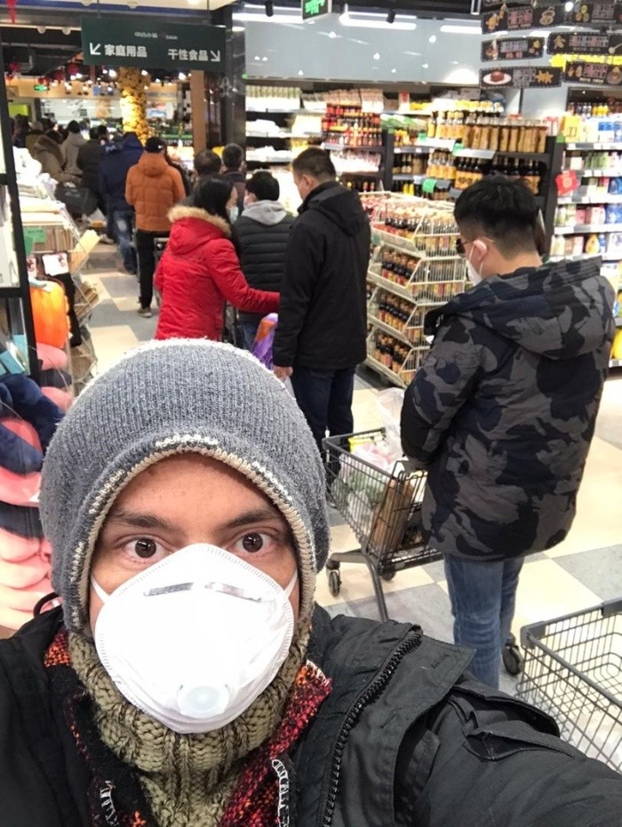 El mexicano Daniel Stamatis se subió a un avión rumbo a China el 17 de enero sin saber que, solo una semana después, la ciudad en la que vive quedaría en cuarentena, con el transporte público suspendido, el aeropuerto cerrado y la obligación legal de no salir de ella.Stamatis lleva siete años viviendo en el gigante asiático. Primero, en localidades más tradicionales y parecidas a la "China del taichí, lagos y lirios" que él se imaginaba antes de conocer el país. Luego, desde 2016, en Wuhan, una ciudad "contaminada" y "en construcción" que "en unos cinco o seis años será bonita", pero que hoy en día "deja mucho que desear".Hasta hace pocas semanas, el nombre de Wuhan no evocaba mucho en el exterior. Tal vez no más que el de un lugar donde se hace escala cuando se viaja a algún país asiático.Sin embargo, en estos días no deja de mencionarse en medios de comunicación de todo el mundo, donde ya es conocida como la urbe donde surgió un nuevo coronavirus que ya se cobrado más de 80 vidas y estropeado la celebración del Año Nuevo Lunar a cientos de ciudadanos.La propagación del virus, del que aún se sabe poco, se "está acelerando", según admitió este sábado el presidente chino, Xi Jinping.Para frenarla, las autoridades decretaron medidas para aislar a decenas de millones de personas en más de una decena de ciudades. Entre los afectados, está Daniel Stamatis."Hace como un mes, algunos compañeros publicaban en nuestros grupos de WeChat, una aplicación que es como el WhatsApp pero en chino: 'Usen máscaras', 'Hay que tener cuidado'. Para mí era una exageración porque ya sabes cómo es uno", recuerda Stamatis, que está haciendo un doctorado en arquitectura con bambú en la Universidad de Ciencia y Tecnología de Huazhong.Stamatis enseña en su cuenta de Twitter cuán vacías que están las calles de Wuhan...... y cuán llenos que están los supermercados.Así fue como oyó por primera vez de la existencia del virus.Las advertencias se fueron haciendo más frecuentes. "Y luego yo me fui a México. El 11 de enero, yo estaba en una boda en México, fíjate"."Tenía mi vuelo de regreso el día 17, que lo tomo perfectamente, y el día 19: alarma total por el virus"."Si hubiera puesto mi vuelo de regreso unos días más tarde, ya no me hubieran dejado entrar a China, me hubiese tenido que quedar en México y eso hubiese sido perfecto", comenta en una entrevista por Skype.Lleva varios días solo: "Solo me comunico por internet, no estoy viendo a nadie".Stamatis vive con su novia, pero hasta en eso ha intervenido la cuarentena."Mi novia se había ido un día antes a Suzhou, otra ciudad, con su mamá y ya no la dejaron entrar. No la dejaron subirse al tren... Por ley, nadie sale y nadie entra", afirma este arquitecto de 36 años.Ubicada en el centro de China, Wuhan es un importante polo comercial en el que viven 11 millones de personas.Es, según Stamatis, un lugar en el que "todo el mundo hace las mismas cosas al mismo tiempo" en una especie de "ritualismo colectivo" que le lleva a evitar estar en la calle a determinadas horas del día."Yo sé perfectamente que, si salgo a las 6:30 de la mañana, tengo la ciudad para mí. Pero si salgo a las 7:30, es un caos. De 7:30 a 8:30 olvídate, no puedes hacer nada... Entonces, yo me muevo a las horas en que no es tan así".El arquitecto asegura que su universidad es tan grande que, pese a movilizarse en metro, taxi o bus, tiene una motocicleta solo para poder desplazarse dentro del campus.Pero ahora "no hay nada, no hay transporte público, no hay metro, no hay taxis, no hay tiendas... Salvo el supermercado, eso sí, pero las tienditas o restaurantes chiquitos no (están abiertos)".Este domingo entró en vigor la prohibición de la circulación de vehículos por el centro de la ciudad. Solo le está permitida a aquellos con permiso especial, como los camiones que transportan provisiones a los centros de salud.De todas formas, él ya estaba de vacaciones por las celebraciones del Año Nuevo Lunar.En principio, no debía regresar al campus hasta el 14 de febrero. "Precisamente hace como una hora nos mandaron un comunicado diciendo que se iban a extender, pero no nos dieron fecha".¿Cómo se vive en una ciudad en cuarentena?Stamatis cuenta que no sale de casa, pero este domingo hizo una excepción para comprar comida.Se puso la mascarilla —"Es ilegal no tener máscara"— y caminó por calles desoladas, en las que apenas se veían vehículos, hasta llegar a un lugar que sí estaba abarrotado de gente: el supermercado."Había muy poquita gente en la calle. Pero dentro del supermercado había muchas más gente que en un día normal".Antes de entrar al establecimiento, sin embargo, tuvo que pasar una prueba: "A todo el mundo nos pusieron un aparato... Era como una pistolita amarilla con un cuadrito que te la ponen en la frente, la checan allí y pasas"."Supongo que es para ver si estás infectado".Lo más probable es que haya sido un termómetro, con el que se está intentando detectar posibles casos de infectados con el coronavirus.Junto a la tos, dificultades para respirar, dolor de cabeza, estornudos y fallos renales, la fiebre es uno de los síntomas que produce esta enfermedad.La medición fue rápida y todo el mundo parecía pasar la prueba.Stamatis volvió a casa bien provisto de alimentos congelados y enlatados y varios litros de jugo de naranja. Quiso comprar frutas y vegetales, pero estaban tan codiciados que la cola para pesarlos "ocupaba todos los pasillos del supermercado"."Nunca antes había visto algo así... No estuve dispuesto a pasar tres horas de cola por tres melones y tres manzanas".Si bien sí vio a algún adulto mayor, no se encontró ni en las calles ni en el supermercado con el otro perfil que compone la población más vulnerable al virus: niños.El mexicano dice estar tranquilo por el momento y cree que hay que esperar a que acaben las festividades en China para ver el verdadero impacto de la cuarentena.