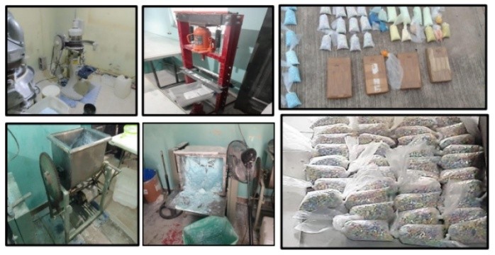 Elementos federales seguraron este domingo un mega centro de manufactura de pastillas de fentanilo, ubicado en la colonia Ampliación Antonio Toledo Corro, en Culiacán Sinaloa.También detuvieron en flagrancia delictiva a tres hombres, aseguraron 530 mil pastillas de posible fentanilo, 30 kilogramos de probable fentanilo en polvo y 150 kilos de acetaminofén.El operativo se llevó a cabo por personal del Ejército Mexicano y Guardia Nacional, en apoyo al Centro Nacional de Inteligencia (CNI) y la Secretaría de Seguridad Pública del estado de Sinaloa, según se detalló en un comunicado.También aseguraron un inmueble, dos máquinas tableteadoras, dos máquinas revolvedoras y una prensa para confeccionar pastillas.Los detenidos y lo asegurado fueron puestos a disposición de las autoridades competentes, con el objeto de que se realicen las investigaciones y acciones periciales que confirmen el tipo y cantidad de droga.La Sedena aseguró que estas acciones, donde no realizaron un solo disparo, se efectuaron con apego al Estado de derecho, respeto a los derechos humanos y a la Ley Nacional del Uso de la Fuerza.530 mil pastillas de posible fentanilo.30 kg de probable fentanilo en polvo.150 kg de acetaminofén.2 máquinas tableteadoras.2 máquinas revolvedoras.1 prensa para confeccionar pastillas.1 inmueble. Apenas el pasado 15 de febrero, también elementos del Ejército Mexicano localizaron en Culiacán, Sinaloa, el laboratorio ”de mayor capacidad de producción de droga sintética que se tenga registrado históricamente y durante la presente administración”. En esa ocasión aseguraron más de 629 mil pastillas de fentanilo.La Secretaría de la Defensa Nacional (Sedena) dio a conocer que el pasado martes, los militares llevaron “a cabo el aseguramiento de un centro de manufactura de pastillas de fentanilo y el laboratorio con mayor capacidad de producción de metanfetamina en el municipio de Culiacán.“Al realizar trabajos de inteligencia para fortalecer el Estado de derecho en el país y detectar organizaciones criminales con presencia en citada entidad federativa, personal militar obtuvo información de un inmueble y un área en el terreno que se ocupaba como laboratorio para la producción de droga”.El inmueble fue hallado en la comunidad de Pueblos Unidos, con 128 kilos de fentanilo granulado; 629 mil 138 pastillas de fentanilo, 100 kilos de metanfetamina; 750 kilos de ácido tartárico, 275 kilos de manitol; 225 kilos de sosa cáustica y 28 reactores de síntesis orgánica.“Por la cantidad de reactores, el laboratorio es el de mayor capacidad de producción de droga sintética que se tenga registrado históricamente y durante la presente administración”.Lo asegurado fue puesto a disposición del Ministerio Público Federal.