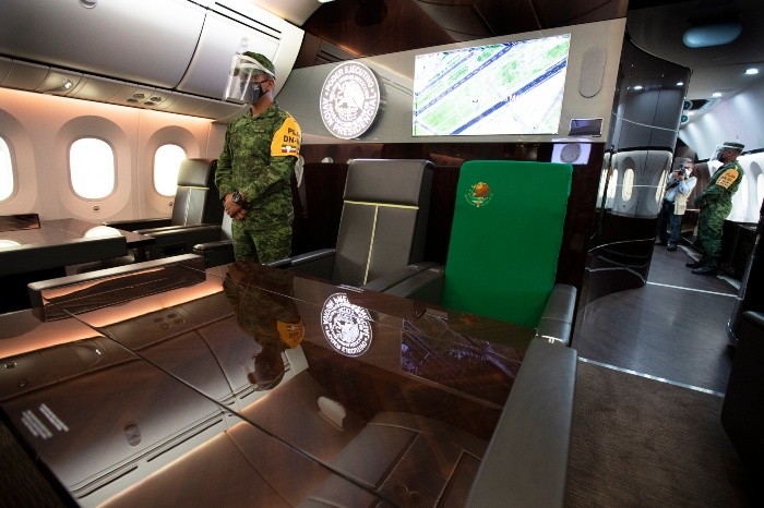 El Gobierno federal realizó esta mañana un recorrido por el avión presidencial TP-01 en el que mostró su interior a medios de comunicación.Tras la conferencia de prensa que encabezó esta mañana el Mandatario Andrés Manuel López Obrador desde el hangar presidencial en el Aeropuerto Internacional de Ciudad de México, personal de la Fuerza Aérea dio un tour con explicaciones sobre el Boeing 787-8.López Obrador no se subió a la aeronave.Desde la cabina de pilotos se explicó que el avión, llamado "José María Morelos", puede volar 14 horas y media continuas, con un alcance aproximado de 15 mil 262 kilómetros y a una velocidad de 912 kilómetros por hora.Los asientos para pasajeros tienen pantallas digitales para el sistema de entretenimiento con contenido como películas, música.Hay un asiento designado como el presidencial, que lleva una cubierta verde.Un área está designada como oficina presidencial, en cuya entrada hay estantes para algunas prendas y paraguas. Incluye una caminadora, un sofá cama y teléfono satelital.El dormitorio presidencial cuenta con un baño completo con clóset, además de una cama doble con muebles para maletera y estantes para ropa y paraguas.El área de prensa tiene una capacidad para 42 pasajeros, con asientos que también traen pantallas de entretenimiento. Además cuenta con cocineta y área con colchonetas para seis sobrecargos.Valorado en 120 millones de dólares, el avión fabricado en 2010 regresó a México el miércoles pasado, tras pasar 19 meses en un hangar de California, donde recibió mantenimiento.En la conferencia de este lunes, López Obrador dijo que su gobierno analiza dos ofertas de compra de la aeronave.IM