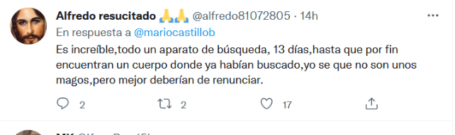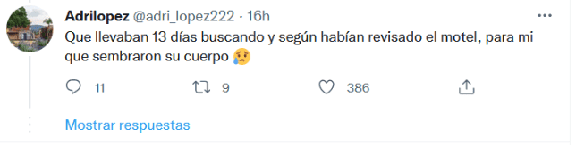 La noche de ayer jueves se informó que el cuerpo de una mujer había sido encontrado en el lugar donde desapareció Debanhi Escobar, en Nuevo León. Tras esta noticia, en redes sociales comenzó a circular un video donde se escucha a Mario Escobar reclamando a los peritos que se encontraban en el sitio. En dicho video, que dura apenas 16 segundos, se escucha claramente cómo Mario Escobar enfrenta a personal de la Fiscalía de Nuevo León y los cuestiona por el tiempo que tardaron en encontrar el cuerpo de su hija. "¡13 días aquí, ¿cuántas veces estuvieron aquí?, ¿cuántas veces?!", dice en repetidas ocasiones el papá de Debanhi. El material fue compartido por el periodista Mario Castillo y ya tiene más de un millón de reproducciones. En el mismo, se puede leer un sinfín de comentarios donde usuarios de Tiwtter recriminan las acciones de las autoridades y muestran su repudio por lo ocurrido con Debanhi. A las 21:08 horas de ayer, la Fiscalía de Nuevo León informó a través de redes sociales que habían encontrado el cuerpo de una mujer dentro de una cisterna en el motel donde se vio por última vez a Debanhi, sin embargo, aclaró que primero tendrían que realizar los estudios pertinentes para confirmar que es el cuerpo de la joven.Pese a esto, el padre de Debanhi dijo a medios de comunicación que se trataba del cuerpo de su hija, pues portaba un crucifijo y la misma ropa que tenía el último día que fue vista con vida.“Mi hija está muerta y no sé qué hacer. Estoy molesto porque me equivoqué, creí en la Fiscalía, repito en la Fiscalía. Nunca me pasaron los tomos, nunca los tuve en mi poder porque ellos no hicieron su trabajo”, sentenció. GC