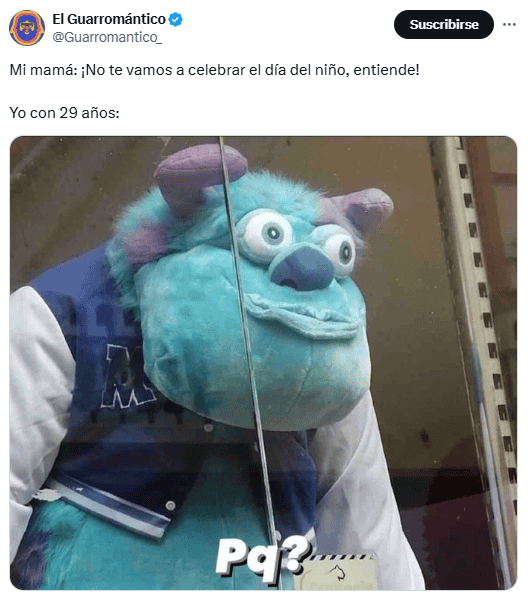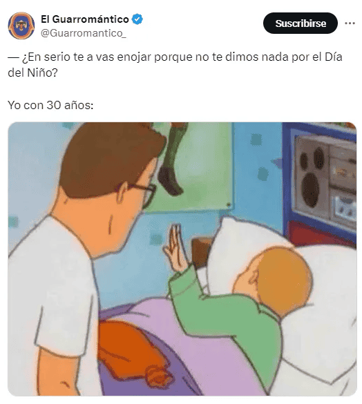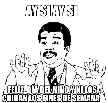 Este miércoles 30 de abril se celebra el Día del Niño en México.Si bien la efeméride internacional surgió el 20 de noviembre de 1959 por iniciativa de la Organización de las Naciones Unidas (ONU), con la intención de reafirmar los derechos de los niños de manera universal, en México la conmemoración se realiza cada 30 de abril. Fue antes, en el año de 1924, cuando se determinó como oficial la fecha, bajo el mandato del entonces presidente Álvaro Obregón, y del secretario de Educación Pública en turno, José Vasconcelos.Una de las formas más creativas de festejar a los menores, y sobre todo, al niño que todos llevamos dentro aun si eres señor o señora, es a través de la publicación de memes, esas graciosas imágenes que de repente se vuelven virales por dar un mensaje divertido o con el que nos sentimos identificados. *Mantente al día con las noticias, únete a nuestro canal de WhatsAppOF