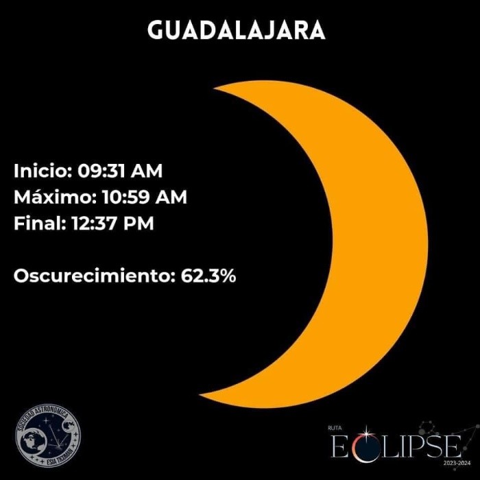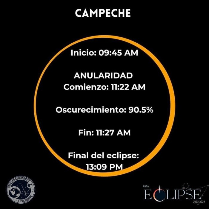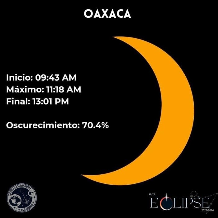 Este sábado 14 de octubre del 2023, México vivirá un eclipse solar anular, un fenómeno que es esperado por cientos de aficionados, expertos astrónomos, académicos y científicos del país. Desde hace varios años México no vive un eclipse tan significativo, por lo que las expectativas y la emoción estarán puestas por miles en el firmamento del sábado, que por un transcurso de horas de desconcierto y fascinación cambiara su lógica diaria. Es importante recalcar que durante este eclipse, al no ser total, no habrá oscuridad absoluta sobre nuestro país. Dependiendo de la región, para ciertos estados y ciudades será un eclipse parcial, mientras que otros podrán disfrutar de un eclipse anular. Si es el caso que la geografía permite la contemplación del eclipse anular, lo maravilloso e irrepetible de este fenómeno es que permitirá a los mexicanos disfrutar del "anillo de fuego", un aro de luz en torno a la luna obscureciendo al sol, pero es necesario tener claro que seguirá siendo de día. Ruta Eclipse 2023-2024, mediante datos racionales y científicos, se ha encargado de compartir los mejores métodos para ver el eclipse de modo seguro, desmentir creencias y mitos en torno al fenómeno, y además especificar cómo es que se verá el eclipse ciudad por ciudad en nuestro país. De modo que si te preguntas cuánto podrás ver o presenciar desde tu ciudad, las siguientes imágenes pueden servirte de orientación y guía para lo que México vivirá este sábado. Todas las imágenes son cortesía de Ruta Eclipse, los cuales puedes seguir a través de sus redes sociales oficiales para mantenerte informado de lo más importante relacionado con el eclipse. También es posible conseguir con ellos lentes certificados, en distintas ciudades del país, para contemplar el eclipse de modo seguro, y así evitar daños a tus ojos. Así es como se vería el eclipse solar del sábado 14 de octubre ciudad por ciudad en México, usando los filtros certificados para la contemplación del mismo: No olvides que mirar el eclipse directamente puede ocasionar daños en tus ojos, por lo que es importante utilizar filtros y lentes especializados con la certificación ISO 12312-2 2015, para evitar efectos perjudiciales para tu vista. Recuerda seguir a Ruta Eclipse en sus redes para mantenerte informado de la información más importante del eclipse solar de este sábado 14 de octubre, y también del que habrá en 2024. FS