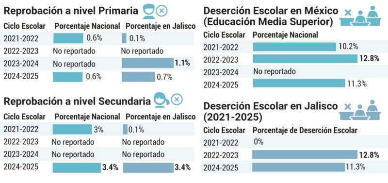 Los resultados de la Prueba PISA dejaron en evidencia las fallas del sistema educativo en México, especialmente en áreas fundamentales como lectura, escritura y matemáticas. Con una ubicación en el tercer puesto de los países con los peores resultados dentro de la Organización para la Cooperación y el Desarrollo Económicos (OCDE), México enfrenta un retroceso educativo preocupante. José Manuel Jurado, académico de la Universidad de Guadalajara, señala que esta problemática es “multifacética” y que varios factores contribuyen al rezago en comprensión lectora. La crítica al sistema es que los estudiantes arrastren problemas para escribir y leer correctamente.“No es broma: un alumno de prepa es incapaz de escribir correctamente una cuartilla. No solamente fallan en la ortografía… la composición de los textos es un desastre. Y todo nace mal desde el nivel básico. Así van saliendo de primaria, secundaria y prepa”, lamenta Margarita Sánchez, maestra de bachillerato. El impacto de la pandemia del COVID-19 es el primer elemento identificado como causante de la brecha educativa. Los métodos tradicionales de enseñanza se vieron obligados a adaptarse a un modelo digital, lo que generó una desconexión con las aulas físicas y dificultó el aprendizaje. Esta transición a la tecnología, según José Manuel Jurado, trajo consigo un incremento en el consumo del contenido audiovisual y una fragmentación de la lectura, lo que afecta la capacidad de concentración en textos largos y complejos.Otro factor clave es el escaso uso de la escritura digital, lo cual no permite a los estudiantes desarrollar las habilidades psicomotrices necesarias para escribir a mano. Esto afecta su memoria, capacidad de expresión y comprensión. Además, los jóvenes muestran una creciente apatía por la lectura, prefiriendo otros medios que no demandan el mismo nivel de concentración. Y los teléfonos móviles están alejando a los estudiantes de los libros y trastornando su capacidad de comprensión lectora, lo que se traduce en un aumento de la ansiedad, distracción y la incapacidad para expresar sus pensamientos de manera clara.Las dos reformas educativas y cambios en los procesos de evaluación también han influido negativamente, dejando a los alumnos sin un marco estructurado que favorezca su aprendizaje. El experto aboga por una mayor disciplina pedagógica y un mejor manejo de la tecnología dentro de los entornos educativos. Y resalta la importancia de la participación activa de los padres de familia, maestros y directivos.El sistema de evaluación educativa ha experimentado cambios que han dificultado la medición precisa del desempeño académico. Las evaluaciones nacionales, como Planea y Enlace han sido suspendidas o modificadas, lo que lleva a una falta de diagnóstico efectivo de las áreas de mejora en el aprendizaje. Comparado con países que implementan modelos educativos exitosos, como Finlandia y Singapur, México sigue rezagado. Estos países han logrado mejorar sus sistemas educativos a través de políticas que promueven una enseñanza más centrada en el estudiante, con una formación docente especializada y un enfoque en el desarrollo integral de habilidades como la lectura crítica, la resolución de problemas y el pensamiento independiente.El aumento de la reprobación en México es otro indicativo de las fallas. La transición hacia la educación a distancia durante la pandemia dejó a muchos estudiantes atrás, como es el caso de Saúl, de 11 años, quien repitió el cuarto grado debido a las dificultades para aprender a leer y escribir. Su madre, Laura, lamenta que, a pesar de sus esfuerzos por ayudarlo, las condiciones no fueron las ideales para el aprendizaje en línea. Y la falta de motivación de otros niños contribuyó a su bajo rendimiento. Saúl tiene 11 años y cursa el cuarto grado de primaria. Aunque es bueno en deportes y Ciencias Naturales, está repitiendo el año debido a calificaciones insatisfactorias en el periodo 2024-2025. Saúl pasó la transición de preescolar a primaria durante el aislamiento por el COVID-19, lo que complicó el desarrollo de sus habilidades de lectoescritura, principalmente. Su madre, Laura, explicó que esto ha sido la causa de su dificultad para avanzar.“Saúl sabe los números, pero todavía no sabe multiplicar bien. Lo más difícil ha sido que no he logrado que aprenda a leer correctamente, no tiene ritmo y muchas cosas no se le graban”, comentó Laura. La falta de motivación durante las clases virtuales también afectó a Saúl, ya que, a pesar de la ayuda de su madre, el ambiente sin compañeros ni maestra no le permitió seguir el ritmo.“Tal vez es mi culpa, porque no dejé que repitiera primero y segundo, pues no era obligatorio, pero en cuarto no pudimos y tuvo que repetir”, reconoció Laura, quien ahora está pagando clases de regularización. Saúl ha mejorado a seis y siete en algunas materias, pero en español aún tiene calificaciones bajas.“Muchos compañeros están en la misma situación, pero a él le afectó mucho. Ahora lo llevo a clases y también a psicóloga. Estoy tratando de motivarlo”, comentó Laura, quien también reconoce las dificultades del sistema educativo. “Los maestros no pueden atender a 40 niños de manera individual”, dijo.En México, el porcentaje de reprobación en primaria se ha mantenido en 0.6% desde el ciclo escolar 2021-2022 hasta el 2024-2025. Sin embargo, en secundaria, las cifras han aumentado, pasando del 3% en 2021-2022 al 3.4% en 2024-2025, según la Secretaría de Educación Pública (SEP).Aunque no se miden directamente en educación media superior, las cifras de deserción escolar han incrementado, pasando de 10.2% en 2021-2022 a 11.3% en 2024-2025. En el ciclo 2022-2023, el abandono escolar alcanzó el 12.2%.En Jalisco, las cifras de reprobación también son mayores que el promedio nacional. En primaria, la tasa es de 0.7% en 2024-2025, mientra