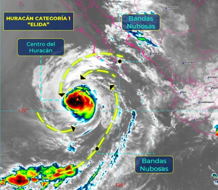 El Servicio Meteorológico Nacional (SMN) pronosticó que para este martes, el huracán "Elida", un canal de baja presión y la onda tropical no. 26 provocarán lluvias intensas en las zonas del noroeste, norte, occidente y centro del país, incluido el Valle de México.La circulación del huracán "Elida" reforzará la condición de lluvias en Baja California Sur, mientras que la onda tropical No. 26, recorrerá el sureste del territorio nacional e interactuará con un canal de baja presión, extendido sobre la vertiente del Golfo de México, provocando lluvias puntuales intensas, descargas eléctricas, rachas de viento y posibles granizadas en Oaxaca, Guerrero, Veracruz y Chiapas, además de lluvias fuertes a muy fuertes en zonas del oriente, sur y sureste del territorio nacional.Finalmente, un sistema de alta presión en niveles medios de la atmósfera mantendrá temperaturas superiores a 40°C en Baja California, Sonora, Chihuahua, Coahuila, Nuevo León y Tamaulipas."Elida" se localiza a 365 kilómetros al noroeste de Isla Socorro, Colima y a 435 kilómetros al oeste-suroeste de Cabo San Lucas, Baja California Sur. Presenta vientos máximos sostenidos de 150 kilómetros por hora.GC
