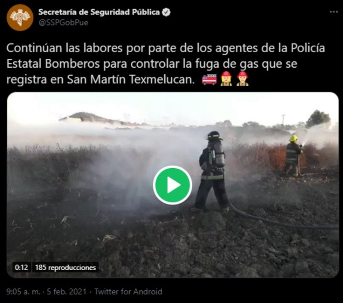 Una fuga de gas provocada por una toma clandestina en un ducto de Petróleos Mexicanos (Pemex), obligó a la evacuación de al menos 500 personas en el municipio de San Martín Texmelucan, Puebla.Durante la mañana de este viernes, habitantes de La Purísima detectaron un fuerte olor a gas LP, por lo que alertaron a autoridades municipales y estatales.La Coordinación General de Protección Civil del Gobierno estatal ordenó la evacuación preventiva, en un kilómetro a la redonda."Personal de @PC_Estatal atiende fuga de gas en La Purísima en San Martín Texmelucan. La zona se mantiene acordonada por elementos @Pemex, @GN_MEXICO_ y @SSPGobPue", reportó en redes sociales.Trabajadores de Pemex acudieron al lugar para iniciar trabajos de reparación y sellado del ducto.OF