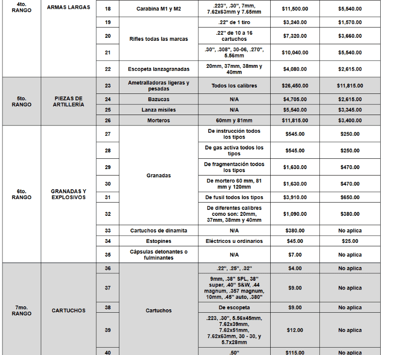 El Gobierno de México publicó en el Diario Oficial de la Federación (DOF) los detalles del programa de desarme "Sí al Desarme, Sí a la Paz", el cual tiene el objetivo de reducir la cantidad de armas en manos de civiles a cambio de un estímulo económico, para de este modo disminuir las muertes accidentales, homicidios, feminicidios, así como cualquier otro delito o expresión de violencia en general.El operativo estará a cargo de las Secretarías de Seguridad y Protección Ciudadana y de la Defensa Nacional, quienes se coordinarán para la programación de la Acción con los Ayuntamientos y Alcaldías del territorio nacional, así como para llevar a cabo pláticas de sensibilización y concientización comunitaria sobre los riesgos de la posesión y manipulación de armas de fuego, así como brigadas para transmitir el mensaje de paz, desarme y no violencia a la población.Por lo anterior, el Gobierno Federal invitó a la población en general a participar en el cambio de cualquier tipo de armamento que tenga en su posesión por un estímulo económico, de acuerdo con el "Tabulador de armas, municiones y explosivos".El pago por cada arma dependerá del rango, grupo, tipo de arma, calibre y si esta sigue siendo utilizable o no, por ejemplo; armas fantasmas de todos los calibres se dará un estímulo económico para las útiles de mil 45 pesos y para las que no son utilizables, con estas mismas características, será de 260 pesos.A continuación te presentamos el "Tabulador de armas, municiones y explosivos", para que puedas tomar tus precauciones y formar parte del operativo: Cabe destacar que cualquier persona mayor de edad interesada en la Acción podrá participar en el operativo "Sí al Desarme, Sí a la Paz", de igual manera la Subsecretaría promoverá la participación de niñas, niños y adolescentes para el intercambio de juguetes bélicos por didácticos, como actividad complementaria.NA