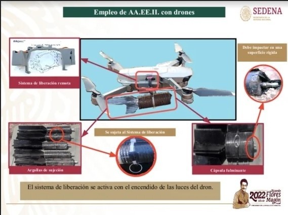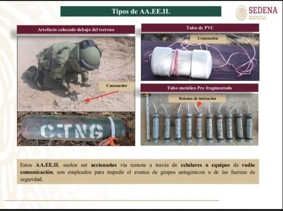 Grupos criminales recurren con más frecuencia al uso de Artefactos Explosivos Improvisados (AEI) en estados como Chiapas, Guanajuato, Jalisco y Michoacán.Esa conclusión consta en una presentación de la Subsección de Contraterrorismo S-2 del Estado Mayor de la Defensa Nacional (EMDN), adscrita a la Secretaría de la Defensa Nacional (Sedena), parte de la filtración de correos electrónicos de esa dependencia que hizo el grupo Guacamaya.Fechada el 1 de agosto último, para una reunión de trabajo al día siguiente con delegados del Comando Norte estadunidense y de agencias de seguridad del país vecino, la presentación, de 30 diapositivas, revela que desde diciembre de 2018 al 1 de septiembre pasado se registraron 377 sucesos en 19 estados del país, y en los cuales aparecieron mil 765 bombas hechizas. De éstas, 52 explotaron, y personal militar desactivó y desmanteló el resto. En promedio, la Sedena desactiva casi un artefacto por día.En Michoacán se reportaron 170 sucesos con 801 AEI; en Guanajuato, 126 y 497, respectivamente; en Jalisco aparecieron 227 dispositivos y en Chiapas, 118.Esta utilización se agravó desde 2020, especialmente por la introducción de drones para cargar los explosivos.La Sedena reporta que el primer AEI se usó en México el 14 de diciembre de 2012, sin especificar el lugar.Un AEI, que consta de siete piezas, como el sistema de iniciación, detonador y metralla, es un artefacto que se coloca manualmente, por lo general de fabricación casera, y dirigido a matar, herir, provocar daños materiales o infundir terror, según el Manual de Seguridad sobre minas terrestres, restos explosivos de guerra y artefactos explosivos improvisados, editado por el Servicio de las Naciones Unidas para la acción contra minas.La Sedena concluyó en que la fabricación de los dispositivos ha evolucionado, pues el diseño, sofisticación y componentes utilizados proporcionan seguridad al agresor y desarrollan mayor grado de letalidad.Ante ello, la secretaría adquirió drones y antidrones, y creó el Grupo de Respuesta a Emergencias, dedicado a la búsqueda, localización, desactivación y análisis de explosivos.Además, la Dirección General del Registro Federal de Armas de Fuego y Control de Explosivos, que regula la fabricación, comercialización, traslado y almacenamiento de materiales explosivos y sustancias relacionadas, ha suspendido y cancelado permisos.El correo electrónico consultado indica que Sedena y otras instituciones han llevado a cabo cuatro ejercicios relacionados con el uso de explosivos en Puebla, Chihuahua, Zacatecas y el "Aeropuerto Internacional Felipe Ángeles".JM