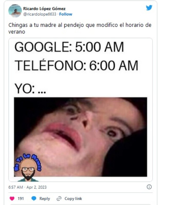 Este domingo 2 de abril debió aplicarse el horario de verano en México; no obstante, esta medida ya no se realizará tras su aprobación en las Cámaras de Diputados y Senadores, así como la publicación del decreto en el Diario Oficial de la Federación.El cambio no se debió realizar; sin embargo, muchos celulares le jugaron una mala pasada a usuarios y cambiaron automáticamente al horario de verano adelantando una hora, lo que generó confusión, prisas, llegadas temprano al trabajo y, por supuesto, muchos memes.Varias personas que sí estuvieron atentas al cambio de hora en sus dispositivos vieron que sí se aplicaba a medianoche, mientras que otros aparatos no lo hacían, lo que generó un extenso debate en Twitter, así como críticas al Gobierno federal por su "engaño".Al poco tiempo comenzaron a surgir post de personas y empresas tecnológicas que recomendaban ajustar la configuración del sistema para cambiar la hora de forma manual y así evitar contratiempos; no obstante, divertidos memes publicados por cibernautas dieron cuenta de la confusión que reina durante las primeras horas de este domingo.JM