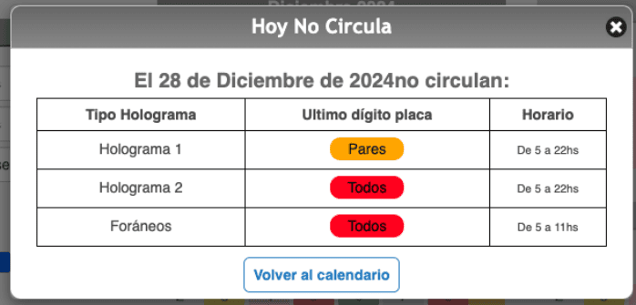 Para mañana 28 de diciembre el Hoy No Circula Sabatino en la Ciudad de México (CDMX) y el Estado de México (Edomex) aplica para los siguientes autos: Al igual que durante la semana, los vehículos con holograma doble cero, cero, eléctricos e híbridos no están sujetos a restricciones en el programa.Recuerda que el horario del Hoy No Circula Sabatino es de las 5:00 de la mañana hasta las 10:00 de la noche, sin embargo, para los automóviles con placas foráneas, la restricción es más corta, de 5:00 a 11:00 horas.El Hoy No Circula Sabatino, limita la circulación de los autos en función del último dígito de la placa y el color del engomado, con el objetivo de prevenir, minimizar y controlar la emisión de contaminantes a la atmósfera de la Zona Metropolitana del Valle de México.A continuación, te presentamos la lista de zonas donde se implementan estas restricciones:NA