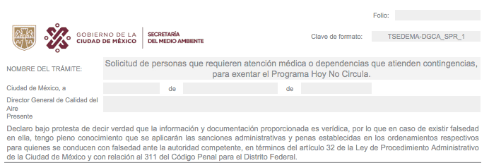 El Programa Hoy No Circula, implementado por la Secretaría del Medio Ambiente (Sedema), tiene como objetivo reducir las emisiones contaminantes en la Zona Metropolitana del Valle de México mediante la restricción diaria de vehículos. No obstante, existe un procedimiento para solicitar un permiso de exención a esta restricción en casos específicos, y aquí te explicamos cómo tramitarlo.El Hoy No Circula se aplica de lunes a sábado en la Zona Metropolitana del Valle de México, abarcando las 16 alcaldías de la Ciudad de México y 18 municipios conurbados del Estado de México. La restricción se basa en el color del engomado, el número de holograma y la terminación de placas del vehículo. El Gobierno de la Ciudad de México ha establecido el programa "Solicitud de personas que requieren Atención Médica para exentar el Programa Hoy No Circula", que permite a los vehículos que transportan personas en emergencias médicas o contingencias ambientales, exentar las limitaciones del programa.1. Documentos de identificación oficial: 2. Formato TSEDEMA-DGCA_SPR_1.pdf debidamente llenado. 3. Tramite debe ser realizado por el propietario del vehículo. En caso de que el trámite sea realizado por otra persona: 4. Tarjeta de circulación. Si la tarjeta no está a nombre del solicitante, debe presentar un documento que acredite la legal posesión del vehículo (factura endosada, contrato de compraventa, carta responsiva, etcétera).5. Documento que demuestre la necesidad de asistencia médica. Vía digital De manera presencial Este trámite no tiene costo. El permiso por Atención Médica es válido por el tiempo que indiquen los doctores en la receta médica. EE