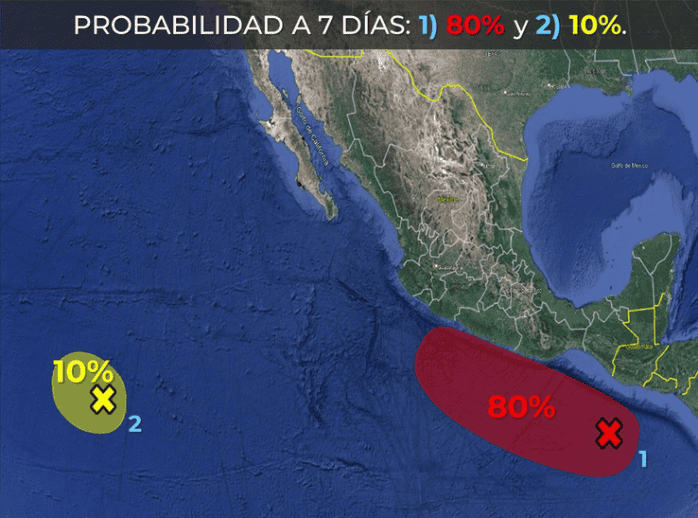 El Servicio Meteorológico Nacional (SMN), fuente climática oficial del Gobierno de México, informó la mañana de este jueves 05 de octubre, que la posibilidad de que se forme un nuevo ciclón en el Océano Pacífico subió a corto plazo, mientras la tormenta tropical "Lidia" mantiene su curso en el mar.El SMN vigila:De continuar su desarrollo, el sistema se convertiría en "Max", el siguiente ciclón de la temporada que, de avanzar, alcanzaría la categoría como huracán; aunque por el momento, es difícil pronosticar su aparición como tal, porque dependen de las condiciones climáticas que se presenten en el transcurso de los días próximos."Max" sería uno de los 16 a 22 ciclones tropicales que se esperan para el Océano Pacífico en la presente temporada 2023.Hasta ahora, se han formado dos huracanes categoría 1 ó 2, cinco huracanes categoría 3, 4 ó 5; y cinco tormentas tropicales, ahora con "Lidia", en el Océano Pacífico. Con información del Servicio Meteorológico NacionalOA