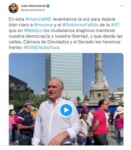 El líder de Morena en el Senado, Ricardo Monreal Ávila, dijo que tras la marcha convocada en distintivas ciudades del país en contra de la reforma electoral deben tomarse en cuenta las voces de la ciudadanía."Las expresiones ciudadanas que hoy se manifestaron nos deben llamar a la reflexión serena. A nadie deben extrañar ni menos ofender; es la democracia y es la libertad. Es el México vivo", compartió en sus redes sociales. Por otra parte, el líder del PAN en la Cámara de Senadores, Julen Rementería del Puerto, dijo que asistió a la marcha en repudio de la reforma electoral."Para dejarle bien claro a Morena y al Gobierno Fallido de la 4T que en México los ciudadanos elegimos mantener nuestra democracia y nuestra libertad, y que desde las calles, Cámara de Diputados y el Senado les haremos frente: #ElINENoSeToca”. "Nuestra democracia, es la defensa de tu voto y que nadie se agencie, sea dueño de los procesos electorales"."Celebro la manifestación pacífica que miles de mujeres y hombres hicieron posible este domingo, en diferentes ciudades del país, para defender nuestra democracia. El Presidente, Morena y sus aliados no pueden ignorar las expresiones que exigen que se respete la autonomía del INE. Dejemos atrás la confrontación y elevemos el debate"."El día de hoy fuimos testigos más que de una marcha, de un movimiento en defensa de la Democracia, desde la ciudadanía, en más de 50 ciudades en México, EUA y España. #YoDefiendoAlINE"."La marcha por la supuesta defensa del INE no es más que la defensa a una cúpula electoral encabezada por algunos consejeros adictos a los lujos y privilegios".