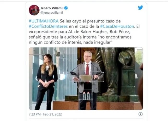 La empresa estadounidense Baker Hughes determinó que, tras revisar los contratos que tiene con Pemex, no encontró “ningún conflicto de interés” en el arrendamiento de la mansión donde vivió José Ramón López Beltrán, hijo del Presidente Andrés Manuel López Obrador (AMLO).El director de Baker Hughes para México y Latinoamérica, Bob Pérez, aseguró que en la auditoría hecha por el despacho McConnell Group, se concluyó que la renta de la casa lujosa en Houston, Texas, es una transacción particular entre Keith L. Schilling, un ex funcionario de la empresa, y Carolyn Adams, nuera de AMLO.En conferencia de prensa en las instalaciones de Petróleos Mexicanos y acompañado del director de la petrolera, Octavio Romero Oropeza, dijo que los papeles fueron firmados respetando las leyes mexicanas.Aseguró que Keith Schilling fue empleado de la firma Baker Hughes, pero salió de la empresa en diciembre de 2019.José Ramón López Beltrán, hijo de AMLO, escribió en sus redes sociales: "Despacho especializado concluye que no existió conflicto de interés por parte de Baker Hughes en relación al arrendamiento de la casa en Houston". También difundió el siguiente mensaje de Jenaro Villamil, presidente del Sistema Público de Radiodifusión del Estado Mexicano (SPREM): "Se les cayó el presunto caso de Conflicto De Interés en el caso de la casa de Houston. El vicepresidente para AL de Baker Hughes, Bob Pérez, señaló que tras la auditoría interna “no encontramos ningún conflicto de interés, nada irregular".Por su parte, el periodista Carlos Loret de Mola, quien dio a conocer la investigación de los lujos del hijo del Presidente, escribió en su Twitter:"Caso José Ramón: desde las oficinas de un sospechoso, el otro sospechoso asegura que su propia investigación los exonera… Esto cada día se pone mejor".El hijo del Presidente ya había hablado antes para intentar aclarar el reportaje donde se dan a conocer los lujos con los que vive.