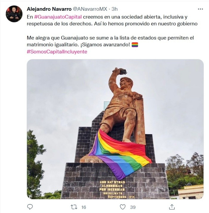 Desde este lunes, las parejas del mismo sexo pueden contraer matrimonio en el estado de Guanajuato sin necesidad de promover amparos.La Secretaría de Gobierno anunció "la procedencia de los matrimonios igualitarios" a partir del 20 de diciembre de 2021 en todas las oficialías del Registro Civil del estado.En la circular 2261/2021, la secretaria de Gobierno, Libia Denisse García Muñoz Ledo, instruyó al director general del Registro Civil, Juan Hinojosa Diéguez, a darle cumplimiento a las uniones civiles sin distinción de preferencia sexual."Se le instruye lo siguiente: A partir de esta fecha y en lo subsecuente, se reconozca y materialice el derecho que tienen todas las personas, sin discriminación por su preferencia sexual, a contraer matrimonio en nuestras Oficialías del Registro Civil, si así fuera solicitado y sin necesidad de que medie recurso legal alguno para su procedencia".El alcalde capitalino panista Alejandro Navarro celebró que Guanajuato se sume a la lista de estados que permite el matrimonio igualitario. "¡Sigamos avanzando!", dijo.JM