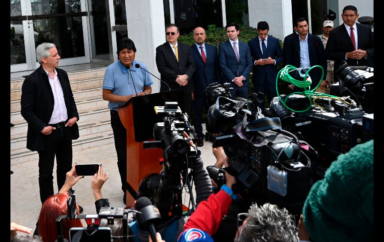 México | La llegada de Evo Morales a México en imágenes Un día después de dejar Bolivia, el expresidente arriba al aeropuerto de la Ciudad de México Por: El Informador 12 de noviembre de 2019 - 12:10 hs Evo Morales saluda a su llegada a México, un día después de que el gobierno le concedió asilo tras renunciar a la presidencia de Bolivia. AP/E. Verdugo Un avión de la Fuerza Aérea Mexicana trasladó al exmandatario desde Bolivia y llegó al Aeropuerto Internacional de la Ciudad de México alrededor de las 11:10 horas locales. AP/E. Verdugo Marcelo Ebrard, titular de la Secretaría de Relaciones Exteriores, recibió a Morales. AFP/P. Pardo AFP/C. Cruz AP/E. Verdugo Morales se detuvo un momento para abrocharse un zapato. AFP/P. Pardo Junto a Morales llegaron a México quien fuera su vicepresidente, Álvaro García (d), quien también renunció al cargo, y su ministra de Salud, Gabriela Montaño (i). AFP/P. Pardo AFP/P. Pardo "El Presidente de México me salvó la vida", dijo al dirigir un mensaje desde el aeropuerto. AFP/P. Pardo Morales también dijo que "seguirá la lucha", y que solo habrá paz en su país cuando haya "justicia social". AP/E. Verdugo EFE/M. Guzmán Evo Morales llega a México Revelan tensiones en viaje de Evo Morales a México "Yo instruí a Ebrard a ofrecer asilo a Evo Morales", dice López Obrador IM Temas Evo Morales Bolivia Marcelo Ebrard Gobierno de México Lee También Clima en Ciudad de México hoy: el pronóstico para el sábado 11 de octubre de 2025 Hoy No Circula Sabatino: Autos que descansan este 11 de octubre en CDMX y Edomex CURP biométrica : ¿Dónde sacar cita para el trámite en CDMX? Detienen a Lex Ashton 'N' por homicidio y tentativa de homicidio Recibe las últimas noticias en tu e-mail Todo lo que necesitas saber para comenzar tu día Registrarse implica aceptar los Términos y Condiciones