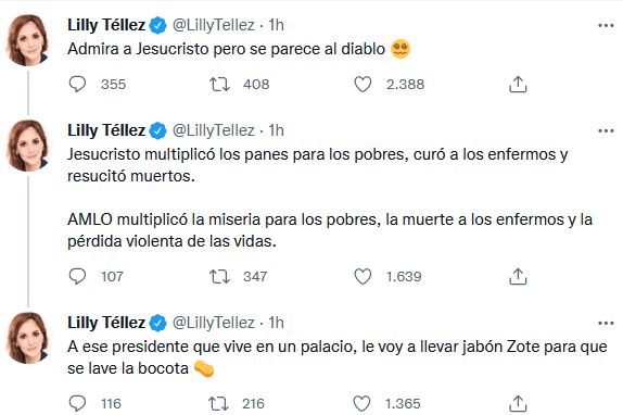 En su conferencia "mañanera" de este lunes en Palacio Nacional, el Presidente Andrés Manuel López Obrador manifestó que Jesús Cristo es el dirigente social que más admira y respeta por su entrega a favor de los desposeídos."Si me piden que yo exprese cuál es mi dirigente social más admirado, al que respeto más por su entrega a favor de los desposeídos, es Jesús Cristo, que, de acuerdo a mi interpretación teológica, encabezó un movimiento en favor de los pobres, y por eso los poderosos de su época, lo seguían, lo espiaban, lo llamaban ‘alborotador del pueblo’, ‘agitador del pueblo’ y lo crucificaron. Y también por eso me identifico con el Papa Francisco", declaró López Obrador en el Salón Tesorería.Tras los dichos del Presidente de México, la senadora Lilly Téllez criticó las palabras expresadas sobre Jesús Cristo."Admira a Jesucristo pero se parece al diablo", escribió la legisladora panista en redes sociales."Jesucristo multiplicó los panes para los pobres, curó a los enfermos y resucitó muertos. AMLO multiplicó la miseria para los pobres, la muerte a los enfermos y la pérdida violenta de las vidas", indicó Téllez en otro mensaje."A ese presidente que vive en un palacio, le voy a llevar jabón Zote para que se lave la bocota", agregó la senadora por Sonora.OA