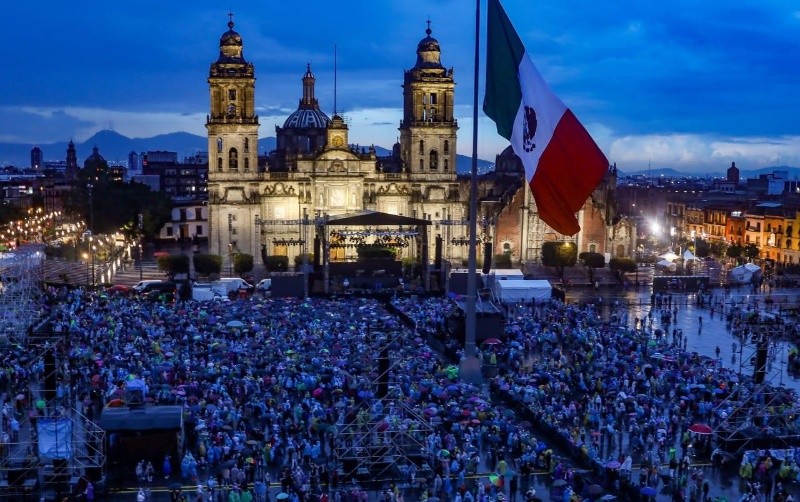 El presidente de México, Andrés Manuel López Obrador, encabezó este viernes el tradicional Grito de Independencia en el Zócalo de la capital, en el que congregó a más de 150 mil personas que celebraron la histórica fecha y en el que únicamente estuvo acompañado de su esposa.Ataviados con sombreros, banderas nacionales, vestuarios de charro, mariachis y música, los miles de mexicanos que se reunieron en la plancha del Zócalo vitorearon al presidente, en lo que fue su penúltimo grito como mandatario del país, pues en 2024 dará la estafeta al próximo gobernante federal.La celebración de los 213 años del inicio de la lucha de la Independencia mexicana se llevó a cabo en medio de una ligera lluvia que resistieron los presentes con sombrillas y plásticos.El Grito de Independencia recuerda el llamado que hizo el cura Miguel Hidalgo en Dolores, Hidalgo, cuando comenzó la Independencia del país.A solo 60 minutos de la medianoche, López Obrador realizó el tradicional paseíllo dentro de Palacio Nacional, su residencia oficial y donde realiza sus conferencias matutinas diariamente.El mandatario caminó por los largos pasillos del lugar, hasta asomarse al balcón del inmueble donde ya lo esperaba un público masivo que lo recibió entre aplausos, gritos y chiflidos.Acompañado de su esposa, Beatriz Gutiérrez Müller, quien portaba una falda multicolor y una blusa blanca, llegó hasta el balcón, donde lo esperaba la histórica campana de Hidalgo, la misma que usó el cura para detonar el movimiento independentista mexicano en 1810.El presidente López Obrador, ataviado en un traje negro, camisa blanca y corbata con los colores del símbolo patrio mexicano se asomó al balcón del Palacio Nacional, esta vez sin ningún invitado especial.Durante el Grito, el mandatario, además de nombrar a los héroes de la Independencia, también reconoció a los "héroes anónimos" y reiteró su llamado a que muera la corrupción, la avaricia, el racismo y la discriminación.Además, pidió celebrar a los pueblos indígenas, a los "hermanos migrantes", al amor y a la grandeza cultural de México, para concluir con un "¡Viva México!", frase que repitió sonriente en diversas ocasiones.El gobernante mexicano concluyó así la penúltima ceremonia del Grito de Independencia que tendrá durante su mandato, para el cual estuvo acompañado de una multitud que le vitoreó mientras ondeaba la bandera mexicana.López Obrador estuvo acompañado de algunos miembros del Colegio Militar, pues días antes había descartado la compañía de representantes del poder legislativo y judicial, con quienes reconoció que no tenía buena relación.Los presentes disfrutaron además los fuegos artificiales que iluminaron el cielo con los colores verde, blanco y rojo y estuvieron acompañados de algunas piezas musicales.Las celebraciones, que iniciaron alrededor de las 19.00 horas, culminaron con el concierto del Grupo Frontera, que programaba culminar su actuación en los primeros minutos del sábado.