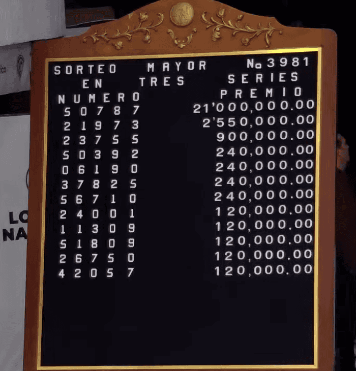 Cada martes es una nueva oportunidad para tentar a la suerte con el Sorteo Mayor de la Lotería Nacional, uno de los sorteos más esperados por los amantes del azar. En esta ocasión, la edición número 3981 se celebra este martes 5 de agosto de 2025, ofreciendo a los participantes la posibilidad de ganar un atractivo premio mayor.El Sorteo Mayor ha ganado popularidad entre los jugadores frecuentes gracias a sus importantes premios y su carácter conmemorativo.El premio mayor que estará en juego este martes asciende a 21 millones de pesos, distribuidos en tres series, lo que representa una excelente oportunidad para quienes compren su cachito. Si la suerte te acompaña, podrías convertirte en uno de los grandes ganadores de este emblemático sorteo que semana tras semana mantiene viva la tradición y la esperanza de miles de personas.Participar es muy sencillo: puedes adquirir tu boleto en los puntos de venta autorizados o a través de la página oficial de la Lotería Nacional. Con tan solo 30 pesos por cachito, podrías ser el próximo afortunado en cambiar tu vida.Los resultados del Sorteo Mayor se darán a conocer este martes en punto de las 20:00 horas. Si participaste, no olvides consultar los números ganadores a través de EL INFORMADOR.Se han dado a conocer los números ganadores del sorteo. El premio mayor de 21 millones de pesos corresponde al número 50787. SV