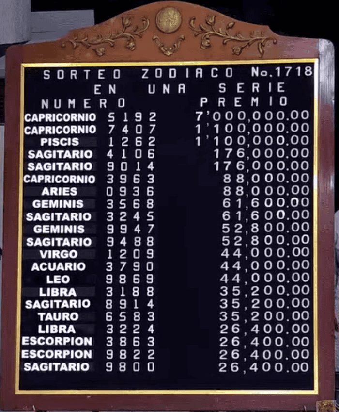 Cada domingo es una nueva oportunidad para tentar a la suerte con el Sorteo Zodiaco de la Lotería Nacional, uno de los sorteos más esperados por los amantes del azar. En esta ocasión, la edición número 1718 se celebra este domingo 7 de septiembre de 2025, ofreciendo a los participantes la posibilidad de ganar un atractivo premio mayor.El Sorteo Zodiaco ha ganado popularidad entre los jugadores frecuentes gracias a sus importantes premios y su carácter conmemorativo.El premio mayor que estará en juego este domingo asciende a 7 millones de pesos, lo que representa una excelente oportunidad para quienes compren su cachito. Si la suerte te acompaña, podrías convertirte en uno de los grandes ganadores de este emblemático sorteo que semana tras semana mantiene viva la tradición y la esperanza de miles de personas.Participar es muy sencillo: puedes adquirir tu boleto en los puntos de venta autorizados o a través de la página oficial de la Lotería Nacional. Con tan solo 20 pesos por cachito, podrías ser el próximo afortunado en cambiar tu vida.Los resultados del Sorteo Zodiaco se darán a conocer este domingo en punto de las 20:00 horas. Si participaste, no olvides consultar los números ganadores a través de EL INFORMADOR.Se han dado a conocer los números ganadores del sorteo. El premio mayor de 7 millones de pesos corresponde al signo capricornio con el número 5192.SV