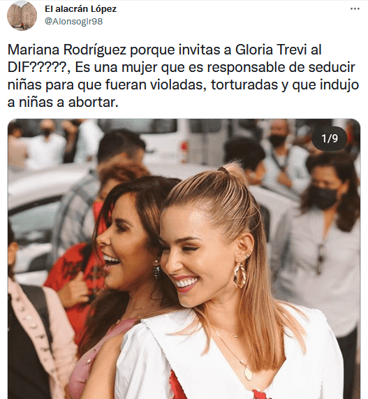 La esposa de Samuel García, Mariana Rodríguez, está nuevamente en la polémica, pues usuarios la están criticando por haber invitado a la cantante regiomontana, Gloria Trevi a visitar el Centro DIF Capullos. La también influencer presumió en sus redes sociales la visita de Gloria Trevi e incluso le agradeció por el donativo que hizo para el Centro. Mariana aprovechó para tomar múltiples fotos a Gloria Trevi cuando estaba conviviendo con los niños, y compartió desde el momento en que la recibieron en sus historias de Instagram.Durante el encuentro, Trevi se tomó un momento para interpretar sus mayores éxitos como “Zapatos viejos” y otros más. Y pese a que esta visita solo buscaba brindar un buen momento a los pequeños, algunos usuarios en redes sociales criticaron a Mariana Rodríguez por llevar a Trevi al lugar, ya que cabe recordar, la cantante estuvo involucrada en un gran escándalo donde se le acusó de trata de blancas y otros delitos. La primera dama de Nuevo León, Mariana Rodríguez, no deja de dar de qué hablar, y es que ayer en sus redes sociales compartió que llegó al Palacio de Gobierno vestida como "cenicienta", una de las princesas de Disney, hecho que no cayó nada bien entre los internautas. GC