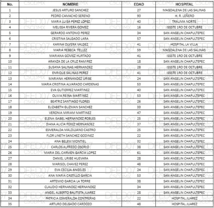 El secretario de Seguridad Ciudadana, Omar García Harfuch, difundió la lista de personas lesionadas que han sido trasladadas a centro hospitalarios, luego del choque entre dos trenes en la Línea 3 del Metro, registrado la mañana de este 7 de enero.A través de su cuenta de Twitter, el funcionario capitalino, quien acudió al lugar de los hechos, reportó que en breve se actualizará la información con los trasladados faltantes.Luego del choque entre dos trenes en el túnel que une las estaciones de La Raza y Potrero, de la Línea 3 del Metro, el secretario de Seguridad Ciudadana, Omar García Harfuch, dijo que de acuerdo con las primeras investigaciones fue "un choque por alcance"."No quisiéramos especular, por eso se realizan los trabajos para determinar lo ocurrido y la Fiscalía ya inició una investigación. Los peritos dirán que fue lo que pasó", dijo en entrevista con Foro TV.OA