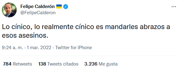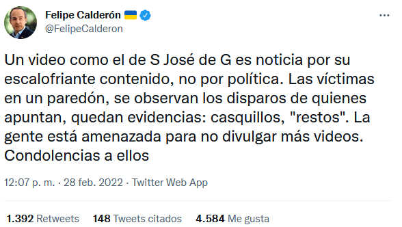 El enfrentamiento entre el Presidente Andrés Manuel López Obrador (AMLO) y el expresidente Felipe Calderón continúo la mañana de este martes luego de que el Mandatario calificara al político michoacano de "cinicazo", tras pronunciarse sobre la presunta masacre de al menos 17 personas en San José de Gracia, municipio de Marcos Castellanos, Michoacán.Felipe Calderón respondió a las descalificaciones hechas por AMLO sobre su condena al presunto fusilamiento de 17 personas en Michoacán.Este martes en su conferencia de prensa "mañanera", AMLO calificó como "un cinicazo" al expresidente Calderón, esto, dijo, por haber opinado sobre la presunta masacre en San José de Gracia, municipio de Marcos Castellanos.A través de un mensaje en su cuenta de Twitter, Felipe Calderón posteó: "Lo cínico, lo realmente cínico es mandarles abrazos a esos asesinos".En su conferencia, el Presidente López Obrador también señaló que está esperado que su antecesor explique por qué tenía como brazo derecho a Genaro García Luna, entonces secretario de Seguridad Pública y hoy detenido en Estados Unidos por presuntos nexos con el narcotráfico."Cualquier cosa que sucede como estos lamentables hechos le dan vuelo, hasta Calderón, cinicazo. Todavía estamos esperando que explique por qué tenía como brazo derecho en su gobierno a García Luna, por qué lo nombró secretario de Seguridad Pública"."Ya no hablemos de por qué se robaron la presidencia en 2006 y de otras cosas, pero se atreve a opinar. Es lo que siempre he dicho, retomando al finado Carlos Monsiváis, que decía que la verdadera doctrina de la derecha, yo digo el conservadurismo, es la hipocresía", dijo.El lunes, en su cuenta de Twitter, el expresidente Felipe Calderón escribió que un video como el que se volvió viral sobre los hechos en San José de Gracia es noticia por su "escalofriante contenido, no por política" y envió sus condolencias a las personas que, afirmó, están amenazadas para no divulgar más contenidos.OA