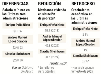 Claudia Sheinbaum rinde hoy su primer Informe de Gobierno con aciertos y fracasos, algunos de los cuales son continuación de su antecesor, Andrés Manuel López Obrador, de acuerdo con especialistas.Los principales logros en el primer año incluyen la ampliación de los programas sociales, el mejoramiento del poder adquisitivo para reducir la pobreza y el incremento al salario mínimo. Estos avances se consideran como una continuación de las políticas de su antecesor, lo que permitió la reducción de la pobreza en México entre 2018 y 2024, según datos del Inegi.Claudia deja en claro que seguirá con las mismas políticas públicas, pero sumó programas sociales, como el apoyo para mujeres de entre 60 y 64 años de edad. Además, se destaca el cambio en la estrategia en seguridad, un giro radical frente a la estrategia de “abrazos, no balazos”, la cual provocó que los índices delictivos se dispararan a niveles nunca vistos, según Valeria Moy, directora general del Instituto Mexicano para la Competitividad.“La estrategia ha dado un giro frente a la dañina estrategia de seguridad que se tuvo en el sexenio de López Obrador. Algunas cifras aún requieren explicación, pero el hecho de cambiar la estrategia es un logro en sí mismo. Habrá que darle más tiempo para ver si esta estrategia es la correcta”.Pese a ello, y a los aseguramientos históricos, incluyendo el desmantelamiento de laboratorios del crimen organizado y los decomisos récord de huachicol en Pemex, la incidencia delictiva sigue siendo uno de los puntos más criticados, incluso con la disminución de homicidios en los primeros meses de su Gobierno.Mario Hueso, académico de la Licenciatura en Gestión Pública del ITESO, cuestionó el alza en el número de personas desaparecidas y criticó que no haya una estrategia concreta para frenar este delito.“Hay una rara relación entre la disminución de los homicidios y el aumento de las desapariciones, que parecen estar siendo ignoradas por la administración pública. No hay una estrategia, o no nos ha quedado claro cuál es, para enfrentar el tema de las desapariciones”.Por otro lado, se critican hechos como la corrupción en Segalmex, el nulo crecimiento económico y la escasa generación de empleos en el país, así como la crisis en el sector energético, agravada por la falta de inversión en la CFE, las deudas, la falta de producción y la baja productividad de Pemex.El problema más grave, según los expertos, es el sistema de salud y el desabasto de medicamentos, especialmente los destinados para tratar pacientes con cáncer. “Es una tragedia el desabasto de medicamentos”, afirma Valeria Moy. Ambos coinciden en que es un gran fracaso que, después de un año de Gobierno, no se haya podido resolver esta problemática.Juan Jesús Ramírez, académico de la Universidad de Guadalajara, acusó que, con el Gobierno de Claudia Sheinbaum, se terminó de “desmantelar las instituciones democráticas” y se debilitó el sistema institucional, tras la desaparición de organismos como el Inai y el Coneval.Los expertos también señalan que uno de los pendientes que la Presidenta deberá abordar con mayor claridad es la relación bilateral con Estados Unidos, en particular por las constantes amenazas de imposición de aranceles. Sin embargo, reconocen que Claudia “lleva la relación en paz” con un personaje tan complicado como Donald Trump. La Presidenta Claudia Sheinbaum llega a su primer Informe de Gobierno y expertos destacan que sus principales logros son el haber ampliado los programas sociales, el mejoramiento del poder adquisitivo para reducir la pobreza o el incremento al salario mínimo, esto último permitió la reducción de la pobreza en México entre 2018 y 2024, según el INEGI. Juan Jesús Ramírez, coordinador de Servicios Académicos del Centro Universitario de los Lagos e integrante del Observatorio de Procesos Políticos y electorales del CUCSH, destaca la ampliación de los programas sociales. “Es un logro la ampliación de la política social. El hecho de que se incrementen los montos y los públicos o grupos a los que están orientados estas políticas es un punto favorable”. Entre los nuevos programas creados por la Presidenta en la nueva administración, está la Pensión Mujeres Bienestar que tiene como meta apoyar a todas las mujeres de los 60 a los 64 años de edad y que consiste en un apoyo económico de tres mil pesos bimestrales a las beneficiarias.La beca Rita Cetina también fue creada en esta administración, en primera instancia para estudiantes de secundaria, pero para el nuevo ciclo escolar, el programa se adaptó y la nueva beca es universal, es decir, se otorgará a todas y todos los alumnos de educación preescolar, primaria y secundaria de planteles públicos para fomentar su permanencia escolar.Por lo tanto, la Mandataria deja en claro que seguirán las mismas políticas con el fin de seguir reduciendo la pobreza. De acuerdo con el INEGI, entre 2022 y 2024, la población en situación de pobreza multidimensional pasó de 46.8 a 38.5 millones: la disminución fue de 8.3 millones de personas, en tanto la población en situación de pobreza extrema se redujo de 9.1 a siete millones. Mario Hueso, académico de la Licenciatura en Gestión Pública del ITESO, resaltó que se hay un “mejoramiento del poder adquisitivo de los sectores populares”, con la baja en la pobreza. Pero el cambio más significativo es el giro radical en la estrategia de seguridad.“El cambio de narrativa en materia de seguridad. Si bien los datos no son los que quisiéramos porque se centran en un solo indicador que es la reducción de homicidios, ya no existe la narrativa ‘abrazos, no balazos’”, indicó el académico.Valeria Moy, directora general del IMCO, coincide en destacar el cambio en la estrategia de seguridad, ya que la estrategia “abrazos, no balazos” de López Obrador provocó que los índices delictivos se dispararan