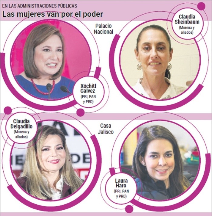 En la elección de 2018, el Instituto Nacional Electoral reveló que 62.3% del electorado acudió a votar en México. La participación de las mujeres fue mayor que la de los hombres por ocho puntos porcentuales. Del total, votaron 66.2% de las mujeres inscritas en el listado nominal, contra 58% de los hombres.Con las últimas reformas avaladas en el Congreso de la Unión y los Estados, se prevé una mayor paridad de género; es decir, que los Poderes Legislativos federal y estatales estén conformados por la mitad de mujeres, por lo menos. Lo mismo se pretende en las alcaldías. Con ese contexto, las próximas elecciones del 2 de junio tendrán una mayor participación de candidatas a los diferentes cargos públicos, encabezadas por la Presidencia de la República, en donde participan Claudia Sheinbaum (Morena y aliados) y Xóchitl Gálvez (PRI, PAN y PRD). El único varón es Jorge Álvarez Máynez (Movimiento Ciudadano).En Jalisco, buscan la gubernatura Claudia Delgadillo y Laura Haro, por las mismas coaliciones, respectivamente. El único hombre es Pablo Lemus (Movimiento Ciudadano).Por la capital del Estado, Verónica Delgadillo (Movimiento Ciudadano) pretende quedarse con el Ayuntamiento de Guadalajara, así como Diana González (por la alianza PRI, PAN y PRD). José María Martínez es el único hombre que compite por la alcaldía (Morena y aliados).