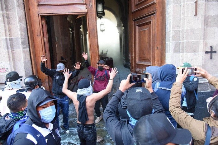 La mañana de este 6 de marzo, estudiantes de la Escuela Normal Rural de Ayotzinapa se manifestaron a las afueras de Palacio Nacional, durante la conferencia matutina "mañanera" del Presidente Andrés Manuel López Obrador. Los normalistas exigieron una reunión directa con el Presidente, debido a la escasez de resultados en cuanto a la investigación de los 43 estudiantes de Ayotzinapa, que fueron desaparecidos el 26 de febrero del 2014 en Iguala, Guerrero, y que al día de hoy sigue siendo uno de los casos sin resolver en México. La manifestación se intensificó al grado en que los normalistas, haciendo uso de una camioneta, derribaron una de las puertas de Palacio Nacional, sobre la calle de Moneda, lo que provocó que fueran repelidos por gases lacrimógenos lanzados por los militares que custodian el recinto, que a su vez formaron una barricada para evitar el acceso de los normalistas. Los estudiantes se replegaron en el Zócalo. Cuando se le cuestionó sobre los hechos que acontecían justo a las afueras del Palacio, López Obrador aseguró que a los estudiantes de la Escuela Normal Rural de Ayotzinapa "los va a atender el subsecretario de Gobernación -Arturo Medina-". López Obrador indicó, no obstante, que no sería él quien recibiera a los normalistas, y que ya se está realizando la investigación pertinente. "Se va a arreglar la puerta (...) lo que quieren es provocar", dijo, y además aseguró que su seguridad no se ve comprometida, ni tampoco la de Palacio Nacional."Estoy seguro en cualquier parte del país, a mí me cuida el pueblo", dijo López Obrador. Con información de SUN Mantente al día con las noticias, únete a nuestro canal de WhatsAppFS
