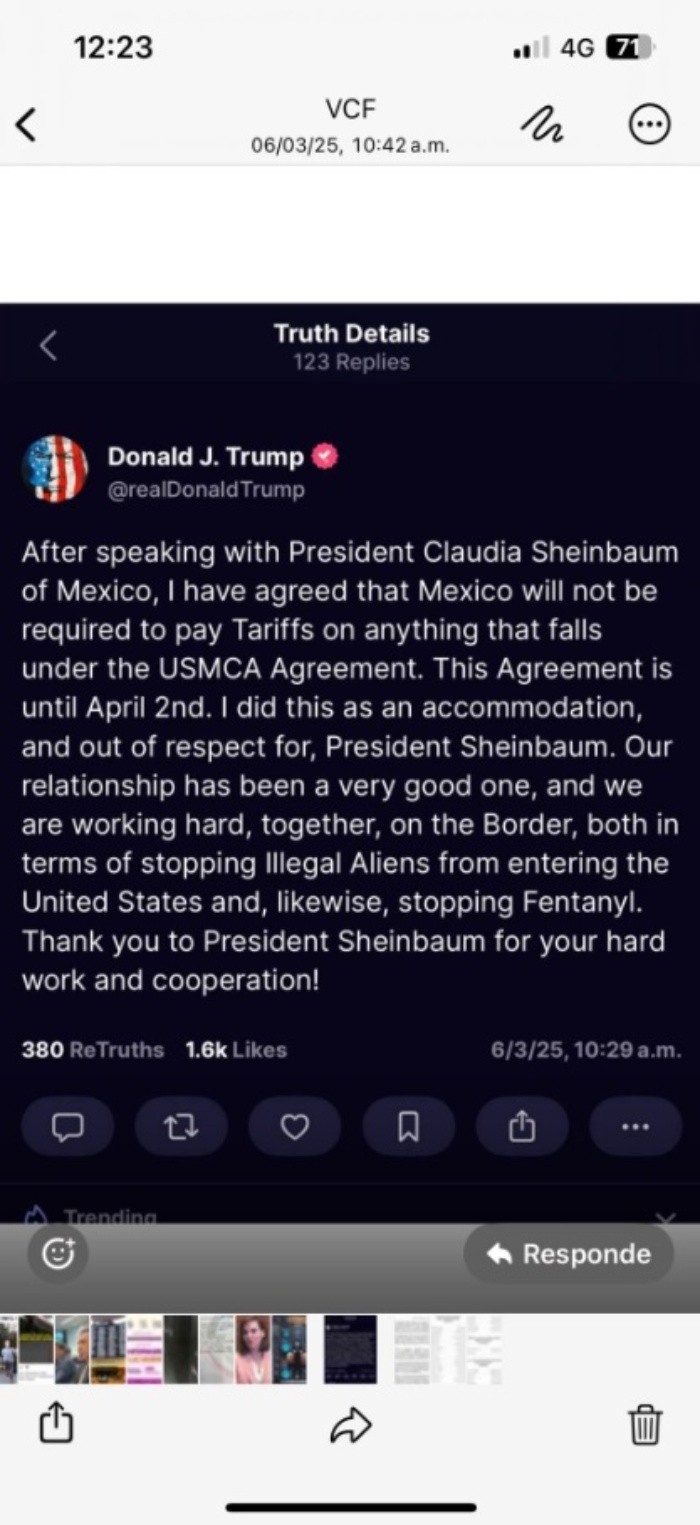 Ante el anuncio de la Presidenta Claudia Sheinbaum sobre el freno de los aranceles impuestos por Donald Trump a México; el presidente del Senado, Gerardo Fernández Noroña, reaccionó en redes sociales al retroceso de la decisión del republicano.Sin embargo, al postear una captura de pantalla extraída de las redes sociales del mandatario estadounidense, Noroña dejó ver algunas imágenes que forman parte de la galería de su celular, entre ellas, una foto de la senadora Lilly Téllez.Al abrir la imagen completa de la captura, se pudo ver una foto de Lilly Téllez, con quien ha tenido desencuentros en el senado, desatando todo tipo de burlas en redes sociales.Ante ello, la senadora panista se burló del descuido, evidenciando lo sucedido: "¡Ay, no!, ese va a llorar más por mí que por su abuela", escribió, en referencia al momento en que ayer, durante una conmemoración adelantada del Día Internacional de la Mujer, Ferández Noroña derramó lágrimas al recordar la historia de vida de su abuela.La rivalidad entre ambos los ha hecho protagonizar escandalosos desencuentros en el pleno, mismos que, en el 2024 en el marco de la aprobación a la Reforma Judicial, causaron gran auge en redes sociales cuando Noroña se equivocó al nombrar a la panista:"María del Carmen Téllez hasta por cinco minutos y la ¡Reforma va!", dijo Noroña. Posteriormente, la senadora cuestionó al subir al estrado: "¿Cómo se llama el bellaco que preside esta mesa?, diga bien mi nombre, bellaco".La intensidad de aquel momento que se volvió viral en redes sociales propició que los internautas bromearan con un "amor imposible" entre los políticos de oposición, Lilly Téllez y Gerardo Fernández Noroña. Desatando todo tipo de memes y videos creados con IA.