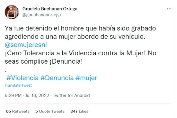 El pasado sábado fue capturada en video una agresión física contra una mujer en la Colonia Los Girasoles en el municipio de Escobedo, al norte de la Zona Metropolitana de Nuevo León.En el video se puede observar cómo el hombre sujeta a la mujer por el cuello y mantiene su cabeza a la altura del volante. “Amiga, ¿estás bien?” gritó desde su auto la mujer que logró grabar la agresión. En el video además se logró capturar el número de placas del vehículo y el rostro del agresor.