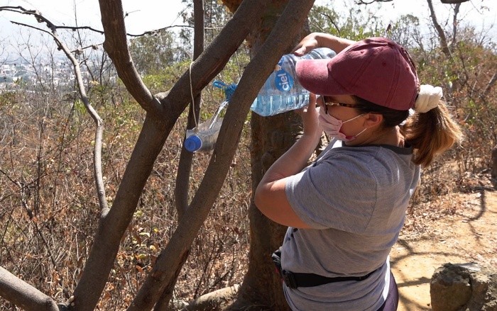 El ambientalista Carlos Alberto Morales, presidente de la asociación Colmillo Blanco que se encarga del ciudado ambiental y de motivar en la ciudadanía la reforestación, destacó la importancia del agua dulce, mientras protege a diario en Oaxaca el único espejo de agua en 87 hectáreas de bosque que sobreviven sin protección del Gobierno en el Cerro del Fortín.El oasis se escarbó artesanalmente hace más de cuatro años en una zona agreste, y a su alrededor florecen especies endémicas de la zona, como árboles de copal, guamúchil, pinos, cactus, y frutales como nísperos, ciruelos y guayabas. Además, la asociación está próxima a llenar otro oasis de 10 mil litros de agua y a construir dos más, también de manera artesanal.La lucha por el agua en México cobra relevancia mientras más de la mitad del territorio, el 51.08 %, afronta una sequía de moderada a extrema, según la Comisión Nacional del Agua (Conagua).Carlos Alberto sube a diario a mantener con agua lo que él nombró "Proyecto oasis del Cerro del Fortín", vaciando con sus manos garrafones que él mismo lleva desde su casa al estanque para que se mantenga al 30 % de su capacidad hasta que lleguen las lluvias.Este proyecto "se basa en construir estanques de agua para los animalitos silvestres como las ardillas, tlacuaches, cacomixtles, palomas, colibríes, quebrantahuesos y otras aves que se acercan a beber agua porque la mancha urbana ha rodeado el área natural y las pocas especies que quedan ya no pueden sobrevivir", explicó a la agencia EFE el defensor ambiental de 44 años.Convocadas por su red social "Cuenta conmigo, Colmillo Blanco", suben hasta el lugar personas interesadas en cuidar el espacio."Es un deber ciudadano de compartir nuestros recursos, por ejemplo el agua, con este simple hecho de venir y de poner un poquito de agua a los bebederos para las aves, las mariposas y las abejas hacemos que la vida sea más sencilla para todos porque sin estos animales muchas cosas van a empezar a ponerse peor", comentó María Elena Jáuregui, habitante de Oaxaca y diseñadora gráfica.Visto desde la ciudad, el Cerro del Fortín es un manchón verde que sobresale entre carreteras, construcciones y zonas deforestadas, donde no existen ríos o arroyos.El espacio se levanta entre la ciudad a más de mil 600 metros sobre el nivel del mar y debe su nombre a la fortificación que sirvió para las batallas de la lucha por la independencia.Morales expuso que "hay una Secretaría de Medio Ambiente que debe procurar la conservación de las áreas naturales". Pero "durante el tiempo que hemos estado aquí nos damos cuenta que todas las palabras y leyes que indican que tiene que cuidarse el medio ambiente con programas funcionales no se llevan a cabo", agregó."Y a nosotros, que estamos aquí preservando con reforestaciones y dándole de comer a los animalitos o llevando gavilanes heridos a las veterinarias, nos ponen obstáculos", lamentó el ambientalista. La ciudad de Oaxaca está rodeada por los ríos Atoyac, Salado y San Felipe, actualmente considerados como ríos vivos, pero agonizantes por haberse convertido en los recolectores de las aguas negras que generan los más de 270 mil habitantes de la zona.AM