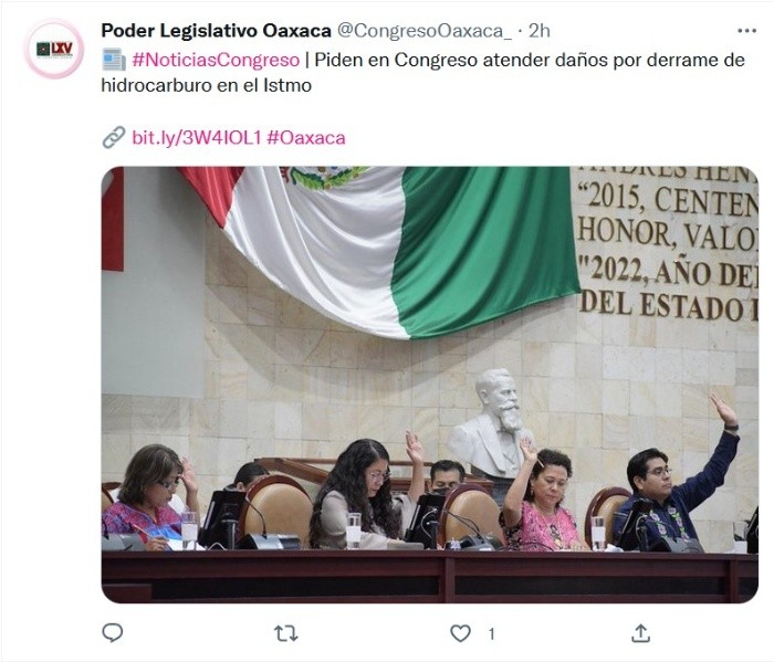 La 65 Legislatura del Congreso de Oaxaca solicitó a autoridades federales y Petróleos Mexicanos (Pemex) atender las afectaciones causadas a ríos y playas del Istmo de Tehuantepec por el derrame de hidrocarburos del 23 de octubre pasado; además, presentaron puntos de acuerdo para castigar a los responsables e indemnizar a los pobladores perjudicados."Derivado del derrame de combustible ocurrido el 23 de octubre que afectó a playas de Salina Cruz y Tehuantepec, así como zonas del municipio de San Juan Guichicovi, junto con sus especies, se pide también a Pemex limpiar los lugares dañados y evitar problemas colaterales de salud pública", señalaron las legisladoras y los legisladores en un comunicado. También pidieron a la empresa estatal que se encargue de dar mantenimiento a los ductos de esa red subterránea que transporta petróleo, gasolina y amoniaco.En sesión ordinaria de la Diputación Permanente, las legisladoras por el grupo parlamentario de Morena, Dennis García Gutiérrez y Yesenia Nolasco Ramírez, presentaron dos puntos de acuerdo mediante los cuales piden indemnizar a los pobladores perjudicados de las comunidades y municipios indígenas de la zona norte del Istmo y castigar a los responsables.También propusieron hacer un llamado a la delegación de la Secretaría del Medio Ambiente y Recursos Naturales (Semarnat) en Oaxaca para que lleve a cabo las evaluaciones necesarias para la restauración de los ecosistemas y recursos naturales. Mientras que al responsable de la Procuraduría Federal de Protección al Ambiente (Profepa) le solicitan investigar el hecho, para deslindar responsabilidades por la posible comisión de delitos ambientales.Ambos puntos de acuerdo fueron turnados para su estudio a la Comisión Permanente de Medio Ambiente, Energías Renovables y Cambio Climático del Congreso local.JM