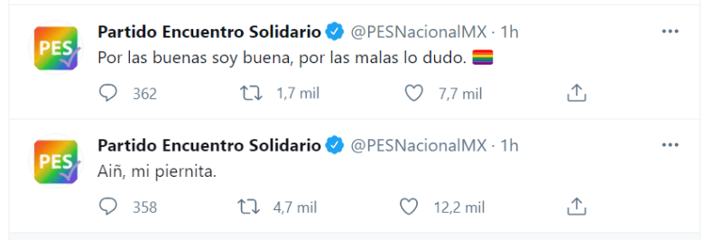 El Partido Encuentro Solidario (PES) perdió el control de su red social en Twitter, luego de que el Congreso de Baja California aprobara los matrimonios igualitarios este miércoles.Cerca de las 18:00 horas empezaron a circular tuits relacionados a la comunidad LGBTTTIQ+ y al aborto."Amor es amor", "No sé bebé, no sé bebé", "Estamos perdidas", fueron algunos de los mensajes que circularon en la cuenta oficial del partido, que en las elecciones del pasado 6 de junio no alcanzara el porcentaje necesario para mantener su registro.Más tarde, a través de un comunicado, el PES confirmó que sus cuentas tanto en Twitter como Facebook fueron hackeadas y utilizadas con fines distintos a los de este Instituto político."Estamos realizando los trámites correspondientes para que nos sea devuelta la administración de las cuentas de dichas plataformas que sirve de vínculo con nuestros militantes y simpatizantes así como con la sociedad mexicana", afirmó.Además el partido se deslindó de los mensajes publicados en dichas redes sociales."Agradecemos a la Policía Cibernética de nuestro país la atención para que no se haga un mal uso de nuestra personalidad ante las autoridades Electorales".LS