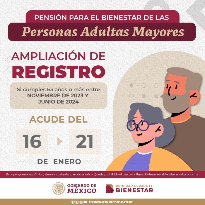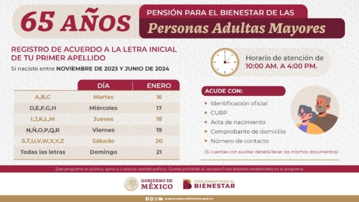 A partir de este martes 16 de enero a el domingo 21 del mismo mes, se realizarán las inscripciones para la Pensión para el Bienestar de las Personas Adultas Mayores 2024, por lo que es muy importante que tomes en cuenta el calendario del registro. Aquí te explicamos qué pasará con quienes no se inscriban.El registro para quienes no alcanzaron a realizar el trámite y cumplen los 65 años en el periodo comprendido entre el 1 de noviembre de 2023 y el 30 de junio del 2024, comenzó esta semana y para inscribirse pueden hacerlo en un horario de 10:00 am a las 16:00 horas en el modulo que te corresponda, si no conoces cuál es, puedes ubicarlo dando click aquí. Las y los adultos mayores que cumplen 65 años años antes del 30 de junio, deben inscribirse a partir de este martes 16 al 21 de enero, porque de no hacerlo, las siguientes inscripciones serán hasta el cuarto bimestre del año (julio-agosto). Debido a las campañas en todo el país por las próximas elecciones del 2 de junio, no se realizará otro registro durante el primer semestre del año.Por lo que si cubres la edad y no te inscribiste esta semana, tendrás que esperar hasta después de julio para realizar el trámite. Si decides inscribirte puedes hacerlo con base a el siguiente calendario: NA