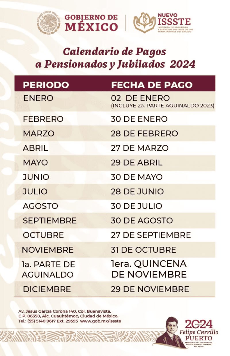 Se publicó el calendario de pagos para las personas pensionadas por el Instituto Mexicano del Seguro Social (IMSS) y el Intstituto de Seguridad y Servicios Sociales de los Trabajadores del Estado (ISSSTE). Si eres una de las personas inscritas a este beneficio, en esta nota te contamos cuándo recibirás tu pago de este periodo peculiar.En marzo se realizará el tercer pago del año correspondiente a estos beneficios. El hecho de que el 2024 fuese un año bisiesto hizo que la fecha de depósito tuviese que modificarse un poco. Los beneficiarios podrían suponer que este día extra que se añade en febrero podría ser parte del calendario, sin embargo, ninguna de las dos instituciones tomará en cuenta este cambio.El ISSSTE realizará el pago el miércoles 28 de febrero de 2024.Por otro lado, el IMSS no realizará ningún cambio con respecto al día en que suele hacer el depósito de la pensión. El pago deberá reflejarse el viernes 1 de marzo del 2024.* * * Mantente al día con las noticias, únete a nuestro canal de Whatsapp * * *OB