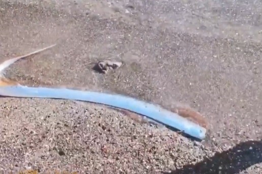 Un extraño visitante ha emergido de las profundidades del océano, generando temor sobre posibles desastres. En la playa El Quemado, en Baja California Sur, bañistas se toparon con un pez remo, conocido como el "pez del fin del mundo", un ser que históricamente ha estado asociado con malos augurios.Este raro pez, que suele habitar a profundidades de hasta un kilómetro, fue hallado en la costa de El Quemado, y su aparición rápidamente se volvió viral. Las imágenes muestran a un turista intentando devolver al mar al largo y brillante pez, que aparentemente medía más de un metro y medio. Sin embargo, el intento fue en vano, ya que el pez, después de agitase, volvió a caer en la arena. Desafortunadamente, la aparición del pez en aguas poco profundas suele ser un mal presagio para el animal. Los científicos advierten que los peces remo que llegan a la orilla generalmente están enfermos o en estado avanzado de descomposición. De hecho, diversas culturas sostienen que la presencia de este extraño pez en las costas es una señal de mala suerte. En la mitología japonesa, se cree que estos peces emergen a la superficie como advertencia de que una catástrofe está por ocurrir. Este fenómeno se hizo especialmente inquietante durante el terremoto y tsunami de Fukushima en 2011, cuando varios de estos peces fueron vistos en las costas en los dos años previos a la tragedia. Un pez similar fue encontrado en La Jolla Cove en agosto, justo dos días antes de que un terremoto de 4.6 grados sacudiera la región. Sin embargo, los expertos se apresuraron a desmentir las creencias populares.La relación entre los avistamientos de peces remo y la actividad sísmica es una creencia antigua, pero no existe evidencia científica que la respalde. El pez remo se destaca como uno de los peces óseos más largos del mundo, llegando a medir hasta 11 metros de longitud, aunque se han registrado ejemplares que alcanzaron los 17 metros. Debido a su enorme tamaño, puede pesar alrededor de 200 kilos.Se distingue de otras especies por su cuerpo delgado y su rostro achatado. Además, posee una boca pequeña con mandíbulas dentadas. Su piel, de textura viscosa y color plateado, carece de escamas, lo que es un rasgo llamativo para los biólogos marinos. Gracias a la forma particular de sus mandíbulas, su dieta es bastante simple, alimentándose principalmente de peces pequeños y calamares. Por lo general, es más común encontrar a estos peces en estado agonizante, ya que suelen subir a la superficie cuando están enfermos. En ocasiones, también emergen para desovar. A pesar de su aspecto temible, el pez remo no representa una amenaza para la mayoría de los animales, limitándose a ser un peligro solo para las especies de plancton que forman parte de su dieta.EE