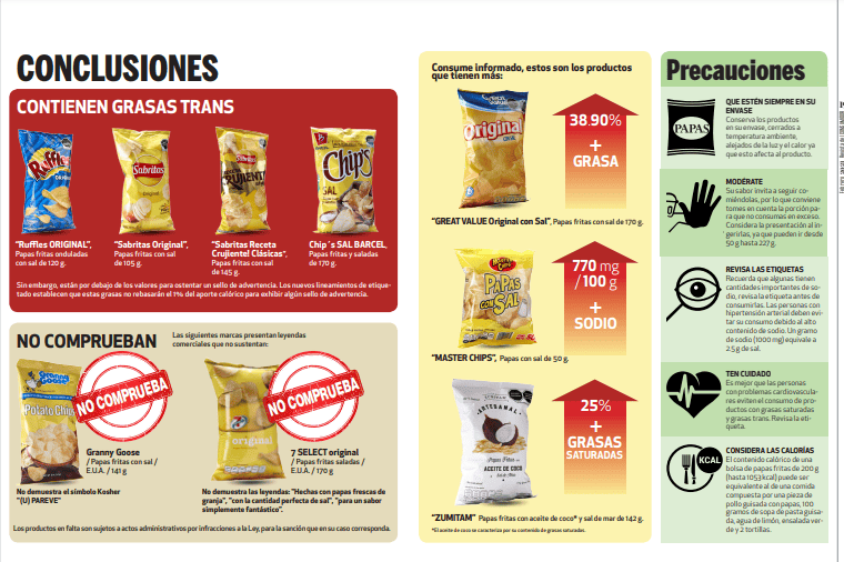 Las papitas fritas son una de las botanas favoritas de todos los mexicanos, pues no hay persona que se resista a comer aunque sea sólo una, ya sea en el finde o en ombligo de semana. En México hay distintos tipos de papitas para disfrutar, desde aquellas que tienen chile jalapeño, como las favoritas de mucho, flamin' hot. Sin embargo, todos sabemos que consumirlas no es saludable y pueden traer serias afectaciones a la salud.Consumirlas con moderación está bien, pero también lo ideal seria comer el producto que sea menos dañino para todas las personas. Por eso, la Profeco se dedicó a estudiar cuáles son las mejores papitas para todos los consumidores.En el 2021, la Revista del Consumidor analizó 23 marcas de las cuales se realizaron 323 pruebas diferentes, esto en el período comprendido del 20 de octubre al 10 de diciembre del 2020. Todos los productos fueron adquiridos del 20 al 25 de octubre del mismo año, y aunque la información parece un poco "desactualizada", sigue teniendo vigencia hasta que la dependencia decida renovar la información.La Profeco recomienda siempre revisar las etiquetas, pues hay algunas que tienen grandes cantidades de sodio. Las personas con hipertensión arterial deben evitar su consumo debido al alto contenido de sodio. Un gramo de sodio equivale a 2.5 g de sal.Las papitas que tienen menos sodio y por tanto, son las "más saludables" son:Basándose en el aporte calórico, estas son las que brindan menos calorías:El contenido calórico de una bolsa de papas fritas de 200 g puede ser equivalente al de una comida compuesta por una pieza de pollo guisada con papas, 100 gramos de sopa de pasta guisada, agua de limón, ensalada verde y 2 tortillas, según la Profeco.
