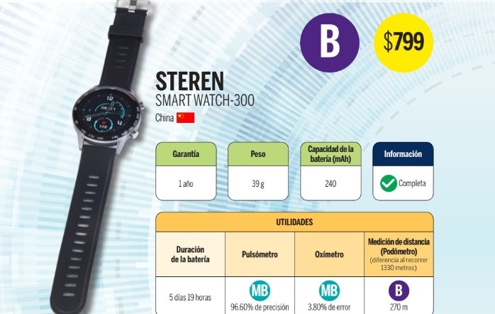 Las vacaciones del mes de diciembre se acercan cada vez más por lo que es importante comenzar a realizar los planes para disfrutar de las fiestas decembrinas, además de tener lista de regalos para esta Navidad, algo que en ocasiones se suele complicar debido a diferentes factores como tiendas llenas, costos altos, poco tiempo, entre otras cosas. Al menos por el tema de calidad no hay nada de que preocuparse, pues la Procuraduría Federal del Consumidor (PROFECO) realizó un exhaustivo análisis de 16 modelos pertenecientes a 11 marcas diferentes de relojes inteligentes, en donde destacaron varios dispositivos con un funcionamiento excepcional, otorgándoles la calificación de "Muy Bueno", resaltó que estos relojes están disponibles en el mercado nacional a precios considerablemente más bajos que otros modelos similares.El riguroso estudio del Laboratorio Nacional de Protección al Consumidor incluyó pruebas detalladas sobre información al consumidor, duración de la batería, conectividad, atributos, utilidades y resistencia física, entre otros aspectos fundamentales para los usuarios.En cuanto a la duración de la batería, el modelo que más destacó es el STEREN SMART WATCH-300, fabricado en China. Este reloj inteligente exhibió un desempeño notable, alcanzando la asombrosa marca de 15 días y 14 horas de autonomía, superando a otros dispositivos evaluados en este aspecto.Además el modelo STEREN SMART WATCH-300 obtuvo como resultado la precisión de pulsómetro de 96.60%, un margen de error del oxímetro de 3.80% y la resistencia a rayaduras fue calificada como “evidente”, teniendo un costo de $799. El modelo no fue de los mejores calificados, sin embargo logró obtener una calificación de “bien” destacando el tema de la batería.Estos hallazgos representan una excelente oportunidad para los consumidores, ya que ofrecen una combinación única de calidad, funcionalidad y precio accesible en el mercado de relojes inteligentes.MF